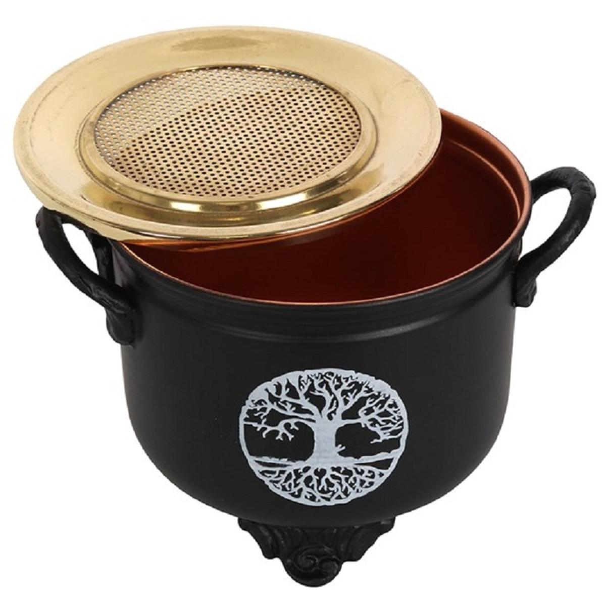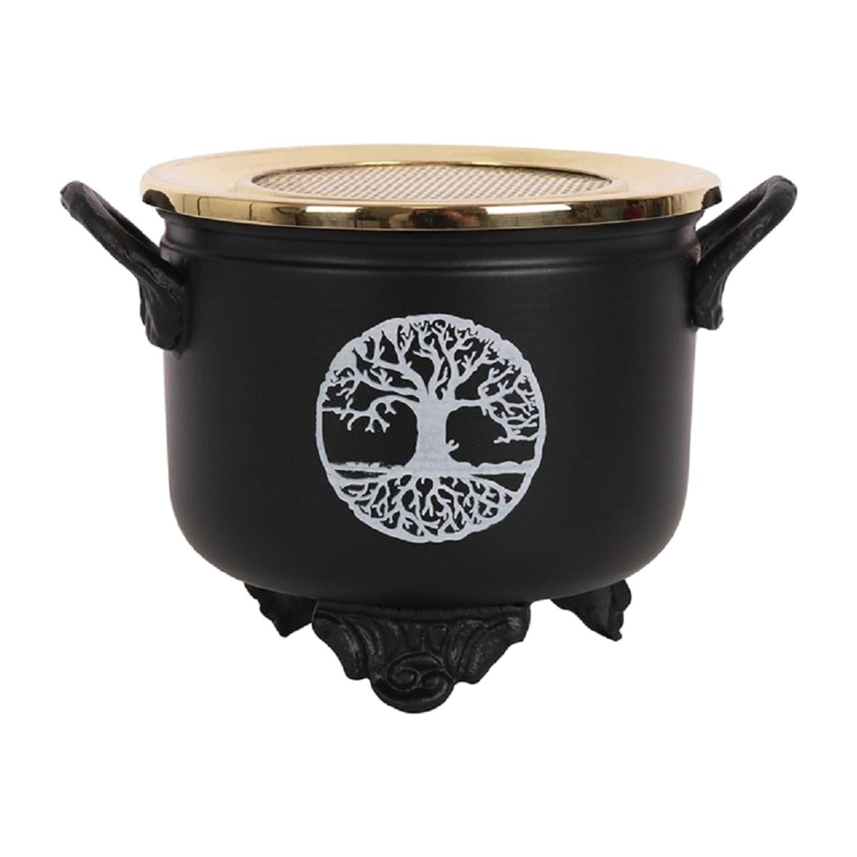 Tree of Life Resin Cauldron Fragrant Metal Burner - Black