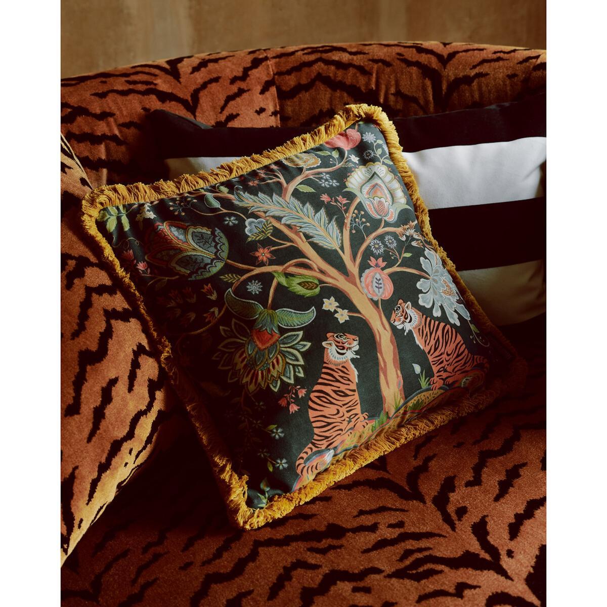 Chinoiserie and tigers are recurring influences on Paloma and this pattern crystallises them together. Opulent and vivid, it serves as a powerful accent piece within the home. Product Dimensions: 43cmx43cm. Composition: Face - 100% Cotton. Reverse - 100% Polyester. This product will be dispatched by one of our trusted suppliers. You’ll be contacted by their selected courier about your delivery.