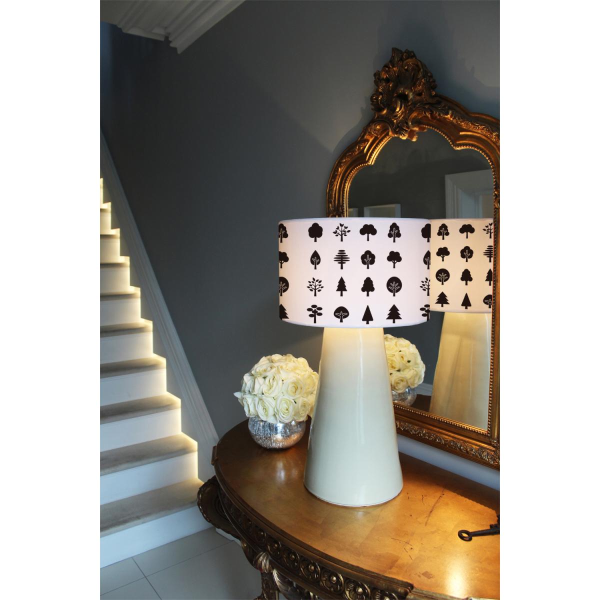 I really like this tree silhouette design for a lamp shade; it adds a modern yet nature-inspired touch to any interior. Its black and white palette makes it versatile, pairing well with both minimalist and eclectic styles. It's especially effective in contemporary, Scandinavian, or even mid-century interiors where clean lines and simple patterns are key. For styling tips, consider using it in a space with other black accents or natural wood elements to create harmony. It also works well in children's rooms or nurseries, where playful patterns introduce warmth without overwhelming the space. To keep the look fresh, pair it with simple furnishings and let the lamp be a statement piece.