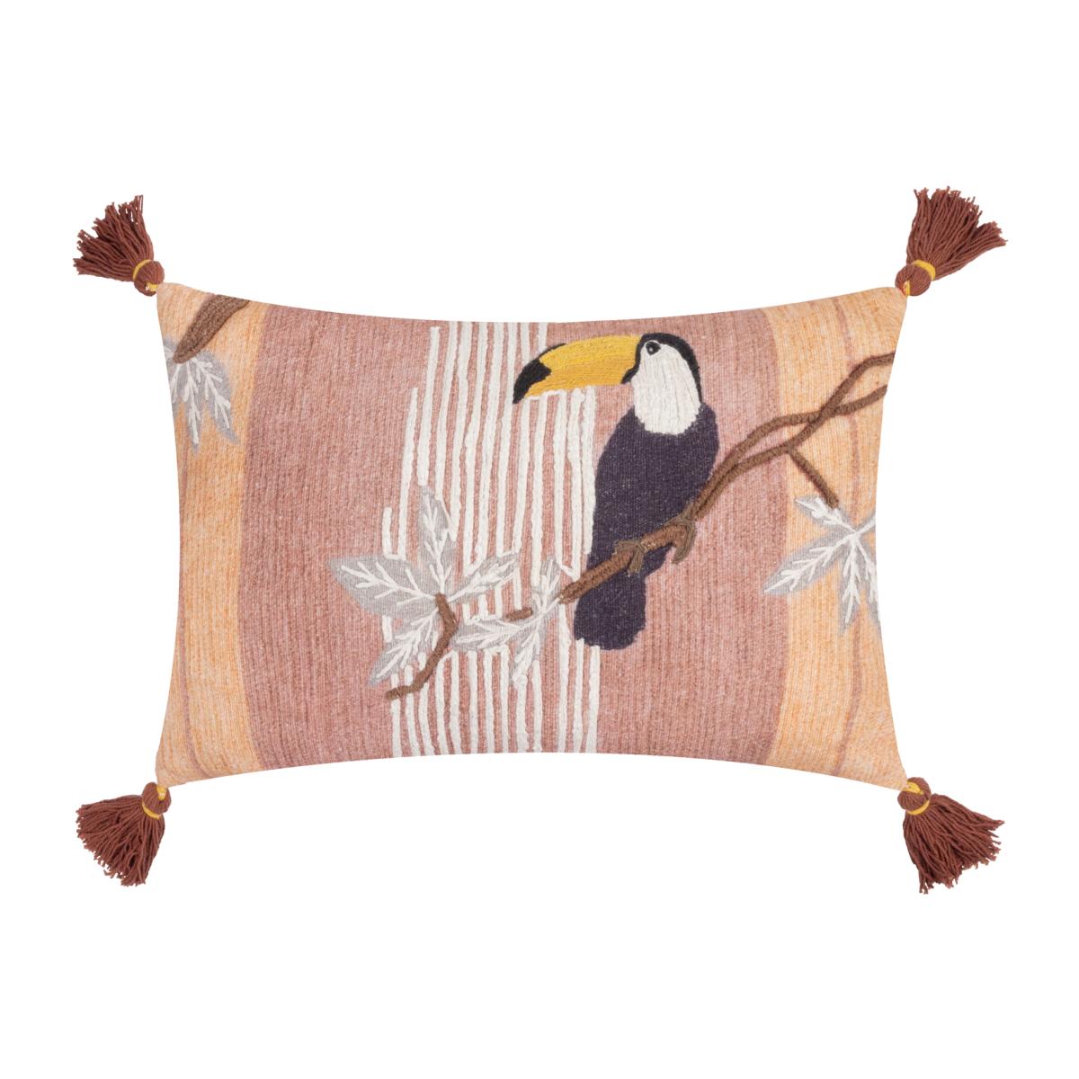 Treetop Toucan Embroidered Cushion - Natural / Polyester