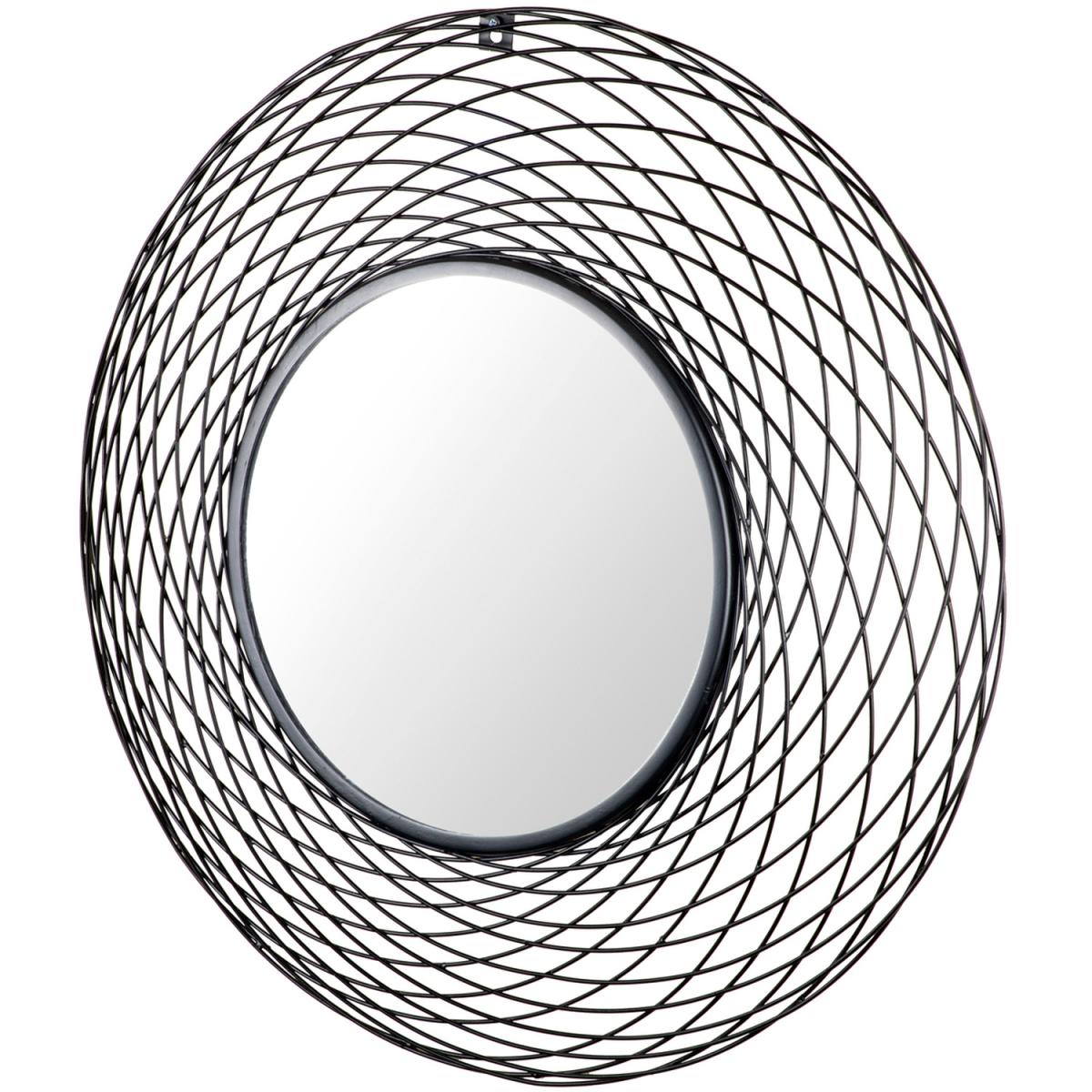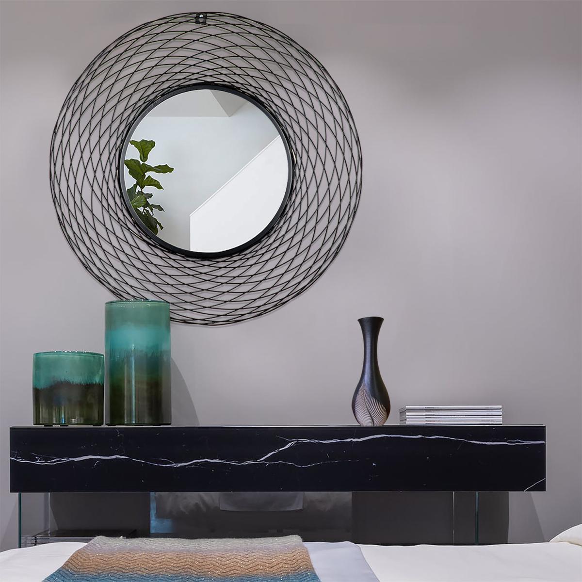 Trellis Mesh Wall Mirror for Hallway, Dining, Metal Frame, Black , 72cm Round. - Black