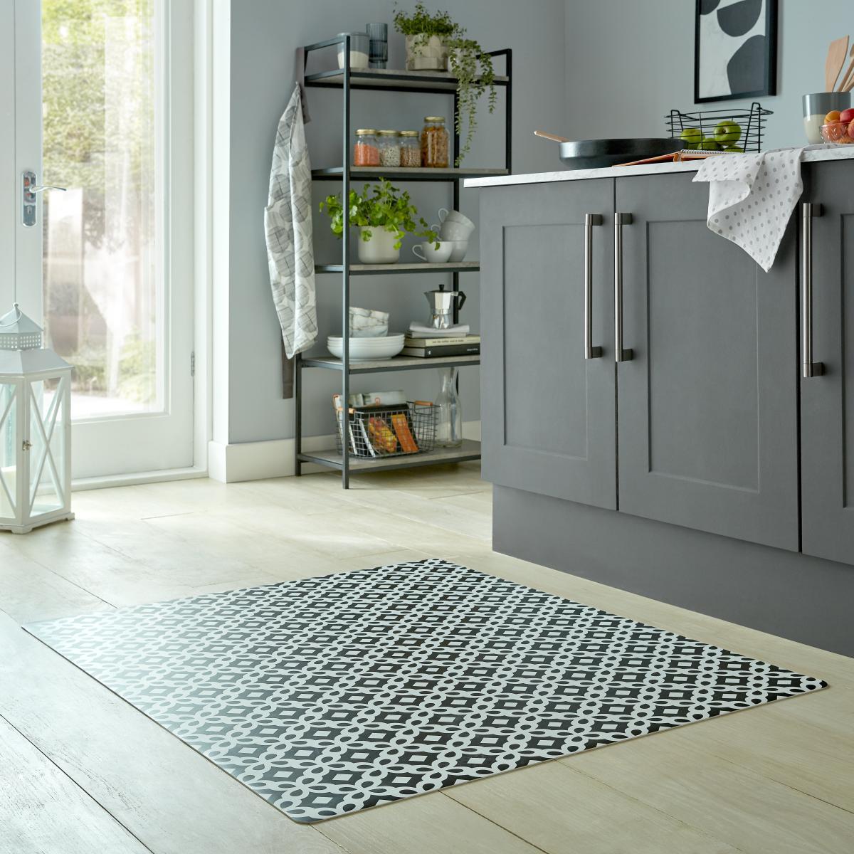 Inject the on-trend tile look to your space with our Moroccan-inspired Trellis Tile Vinyl Mat. The 100% vinyl composition makes the Trellis Tile Vinyl Mat perfect for on-the-go homes. The low-profile design is hard-wearing, the ideal choice for adding some comfort to high-traffic zones. Wipe-clean and moppable, the Trellis Tile Vinyl Mat is pet and child friendly. We love using in kitchens, hallways and bathrooms to add a cushioned element to hard floors and style to your busy spaces. Turn regularly to ensure even wear and to reduce moisture from building up under the mat. Wipe clean any spills with a damp, white cloth. Avoid the use of hard chemicals or bleach. Do not wash or tumble dry. Do not place this rug near an open fire. Please do not leave children or infants unattended.