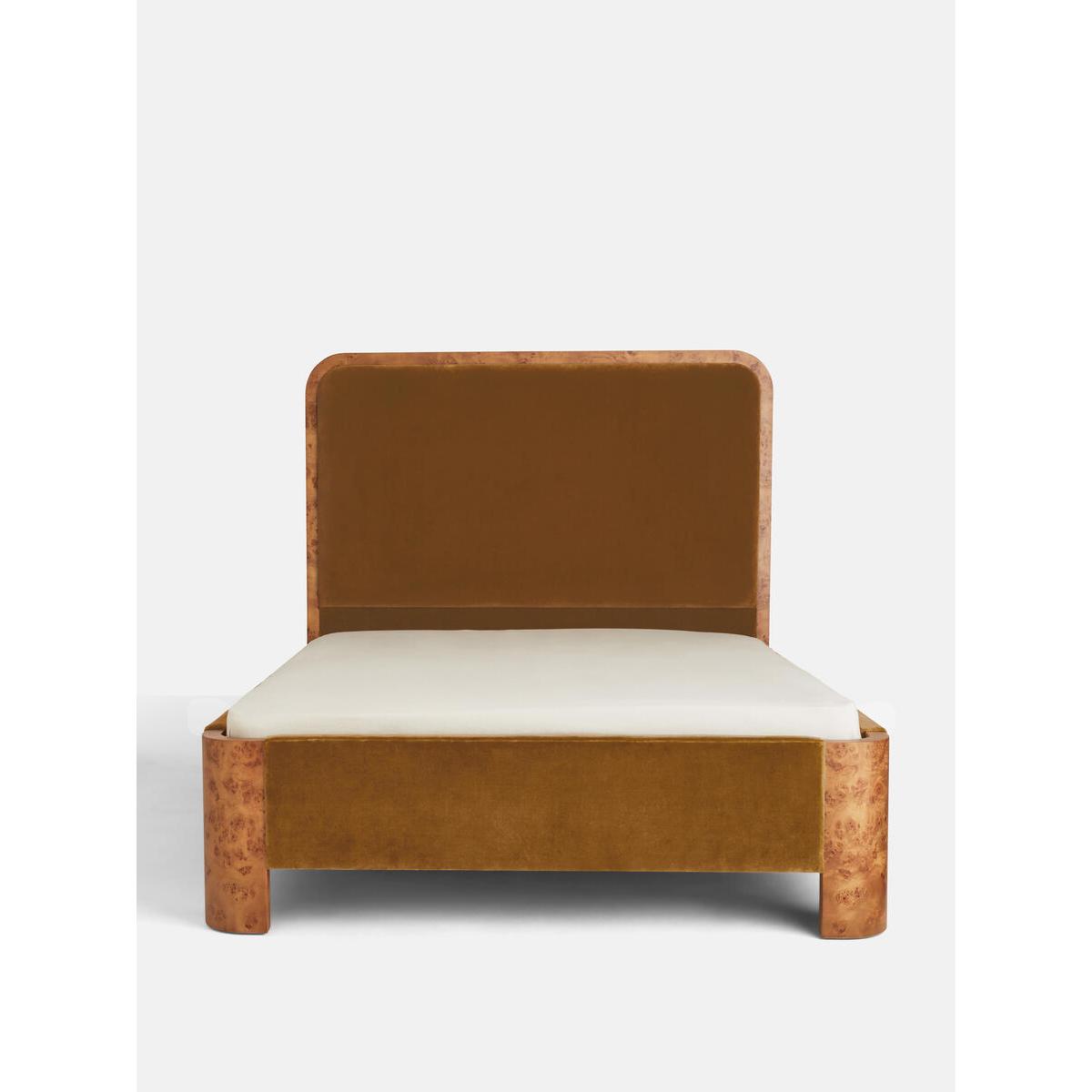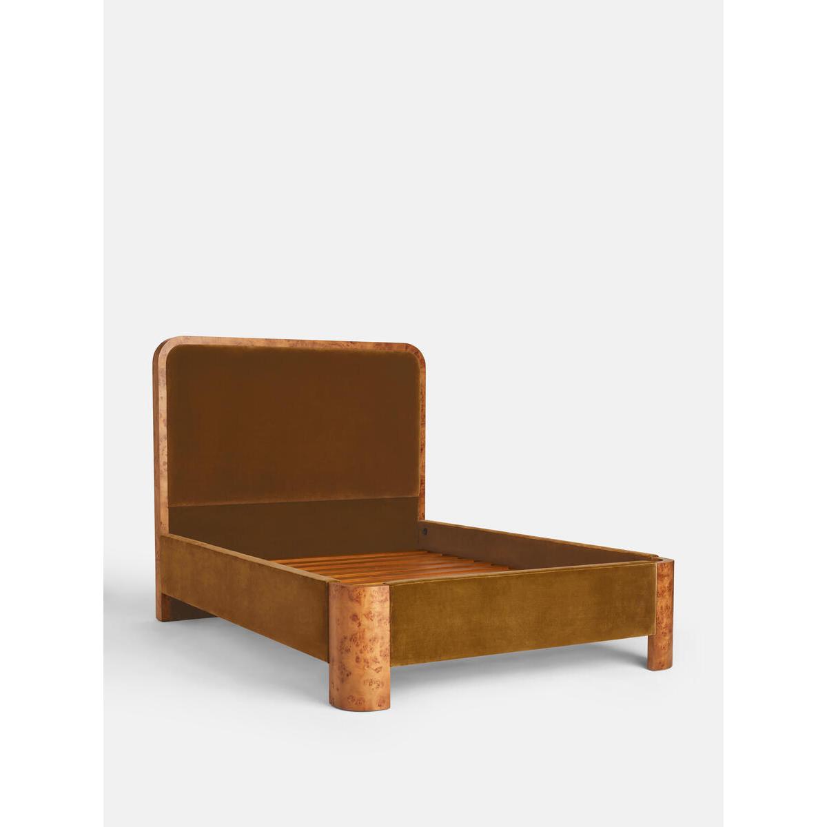 As seen in Soho House Nashville, the Tremont bed features a sculptural Mappa burl frame in a warm mid-tone finish and velvet upholstery, turning the headboard into a defining design element. Burl detail to the back means this particular style can float within a space and work as a room divider. Super king upholstered bed Mappa burl frame in mid-tone finish Sculptural statement headboard Upholstered in velvet Available in other fabrics and sizes Pair with our SH Hypnos Super King Mattress As seen in Soho House Nashville