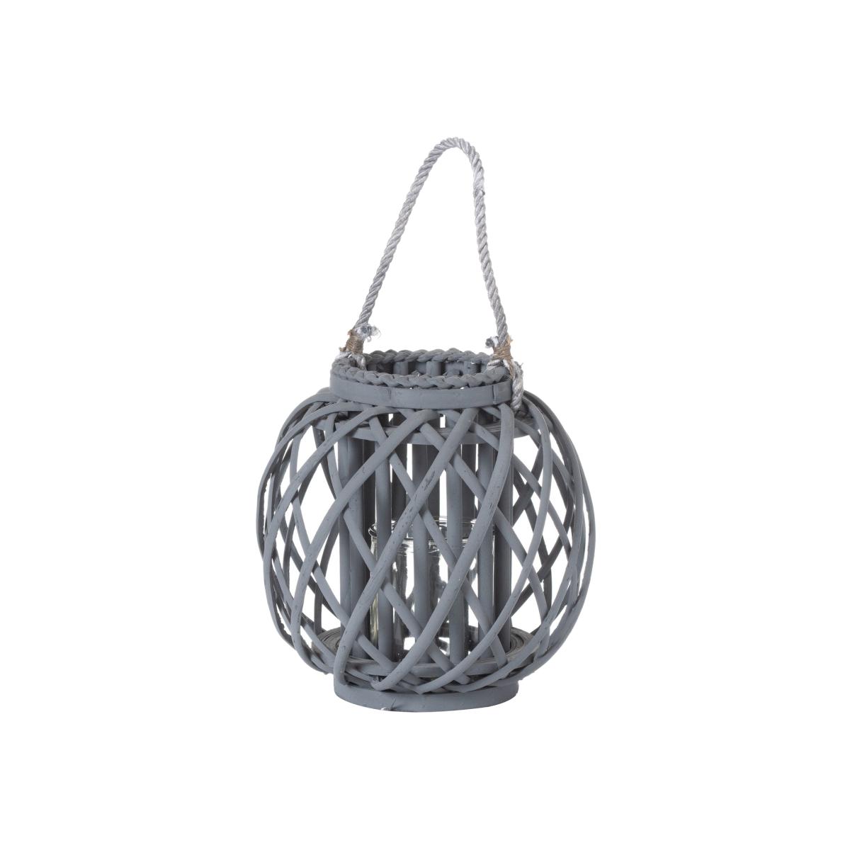 Trendy Small Woven Wicker Basket Lantern - Grey