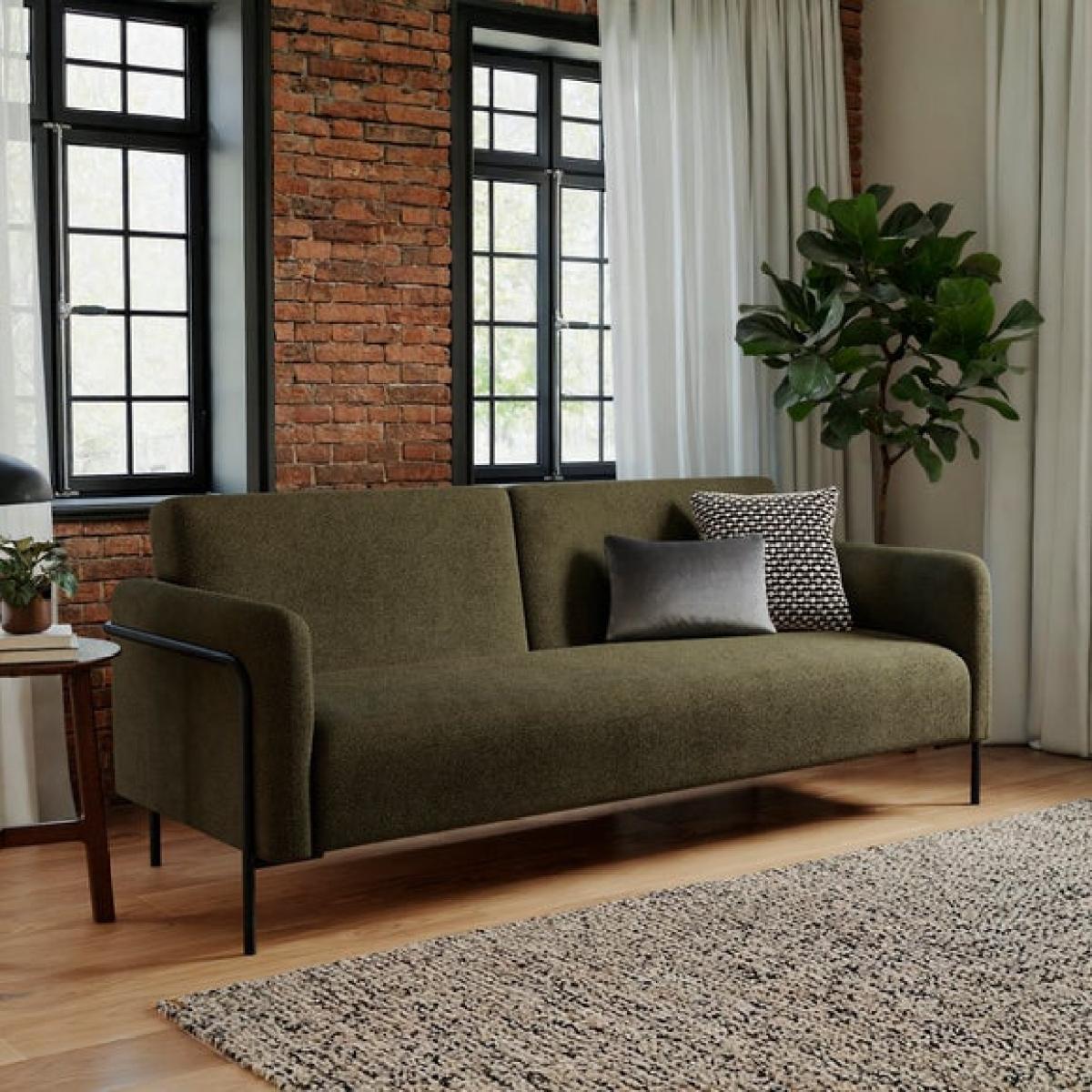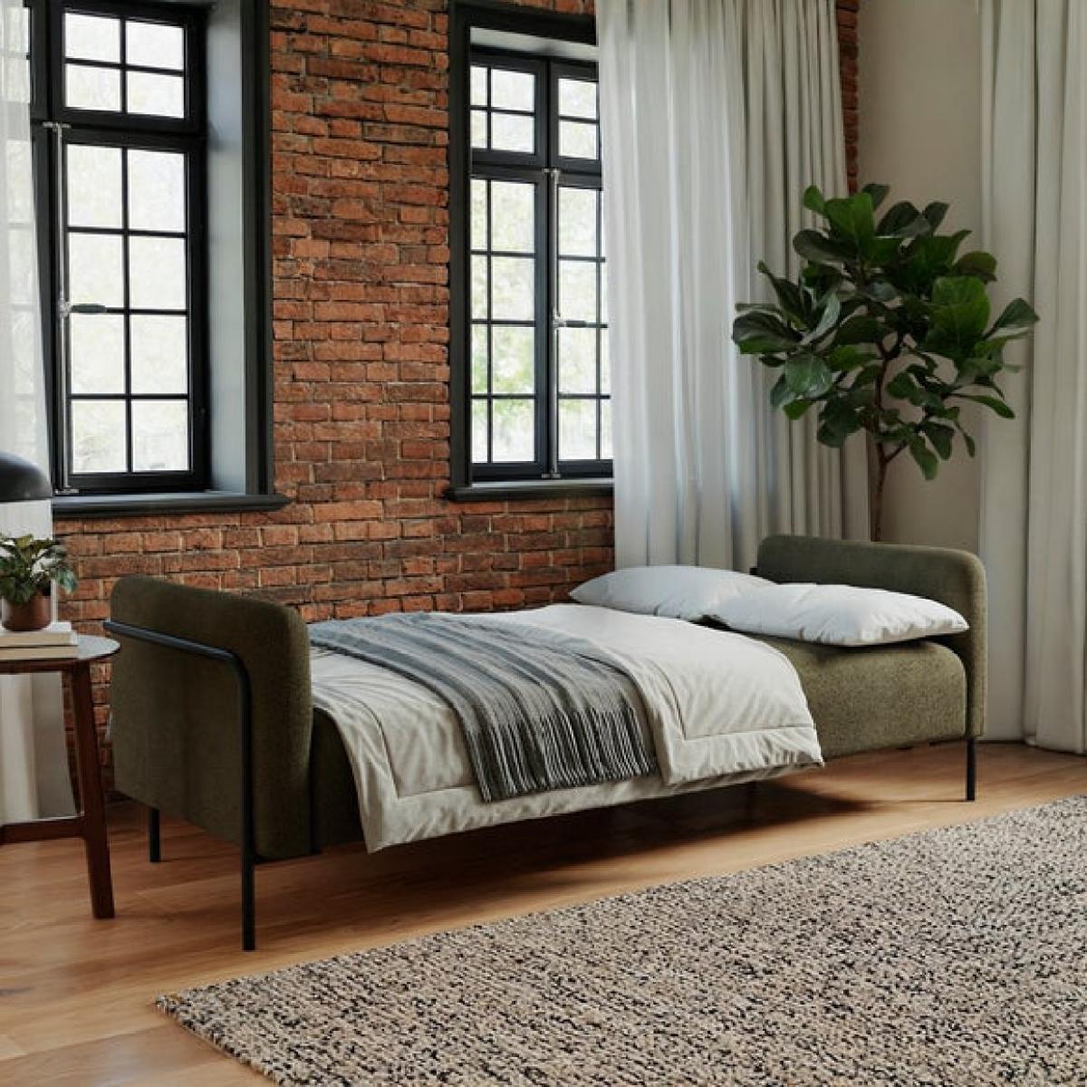 I love this Trent Boucle Industrial Clic Clac sofa bed for its sleek, modern look combined with practical functionality. Its boucle fabric adds a touch of texture and warmth, making it versatile for both contemporary and industrial-inspired interiors. It works well in small living spaces, guest rooms, or home offices where maximizing space is key. To style it effectively, consider pairing with minimalist or Scandinavian furniture for a clean aesthetic, and add cosy throws or cushions in neutral or muted tones to soften the look. When making it into a bed, keep bedding simple and streamlined to maintain the overall modern vibe. The understated metal legs and the clic-clac mechanism also make it a durable, convenient choice for everyday use.