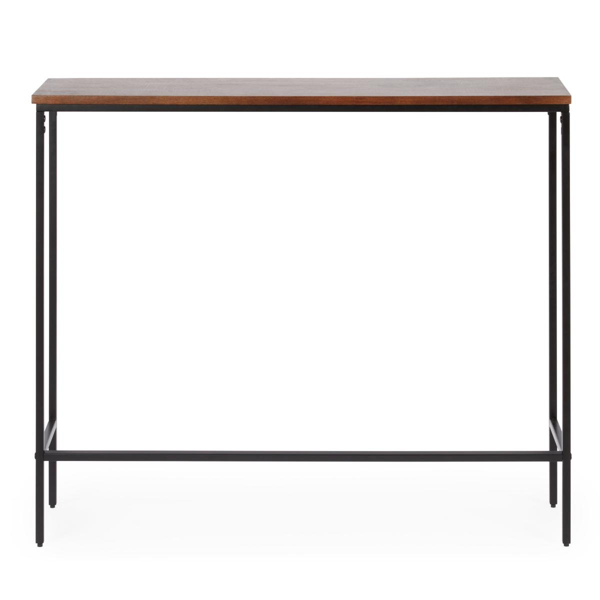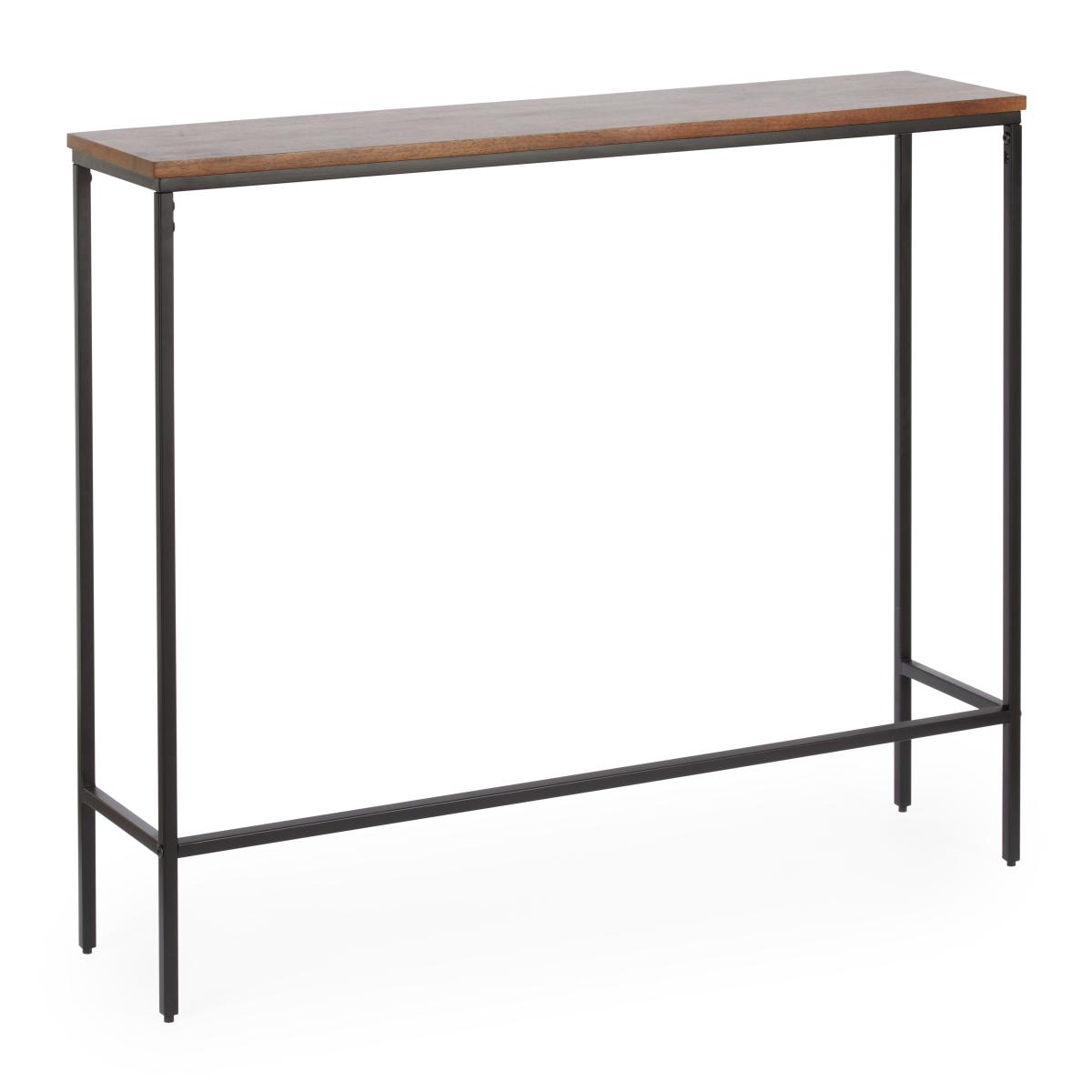 I love this piece for its sleek, minimal aesthetic and versatile design. The warm mango wood top adds organic texture, making it suitable for both contemporary and industrial interiors. It works particularly well in entryways, hallways, or as an accent table in living rooms. For styling, consider keeping the surface simple with a statement lamp or a small plant to highlight its natural materials, while leaving room for everyday essentials. Its slim profile means it won't clutter a space, but it still provides a functional surface, making it a smart choice for adding both style and practicality.