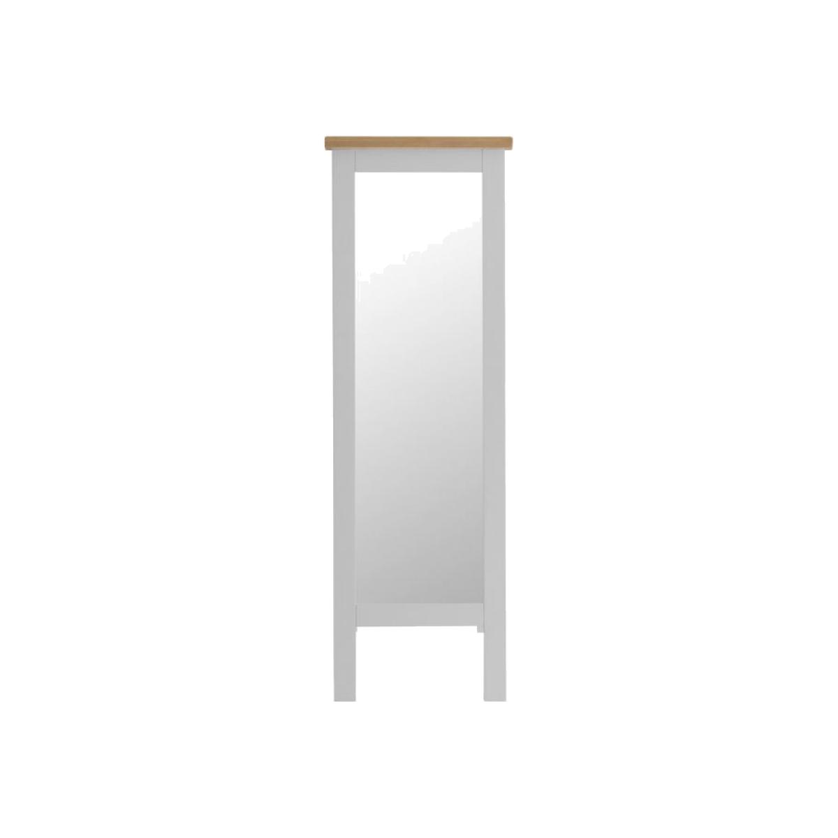 This sophisticated Sutton Cheval Mirror is in a soft white with rounded corners. Features a flip top storage trunk and can pivot for desired angle on the mirror. This range is lovingly crafted for a little something special. Key Features: Light assembly required. Flip top storage Trunk Able to Pivot for desired angle on the Mirror Designed for a modern and convient Storage solution Colour - White Dimensions: Height: 180cm Width: 65cm Depth: 35cm Weight 23kg All screens vary in colour reproduction and whilst every effort has been made to display the colour as accurately as possible it is for guidance only.