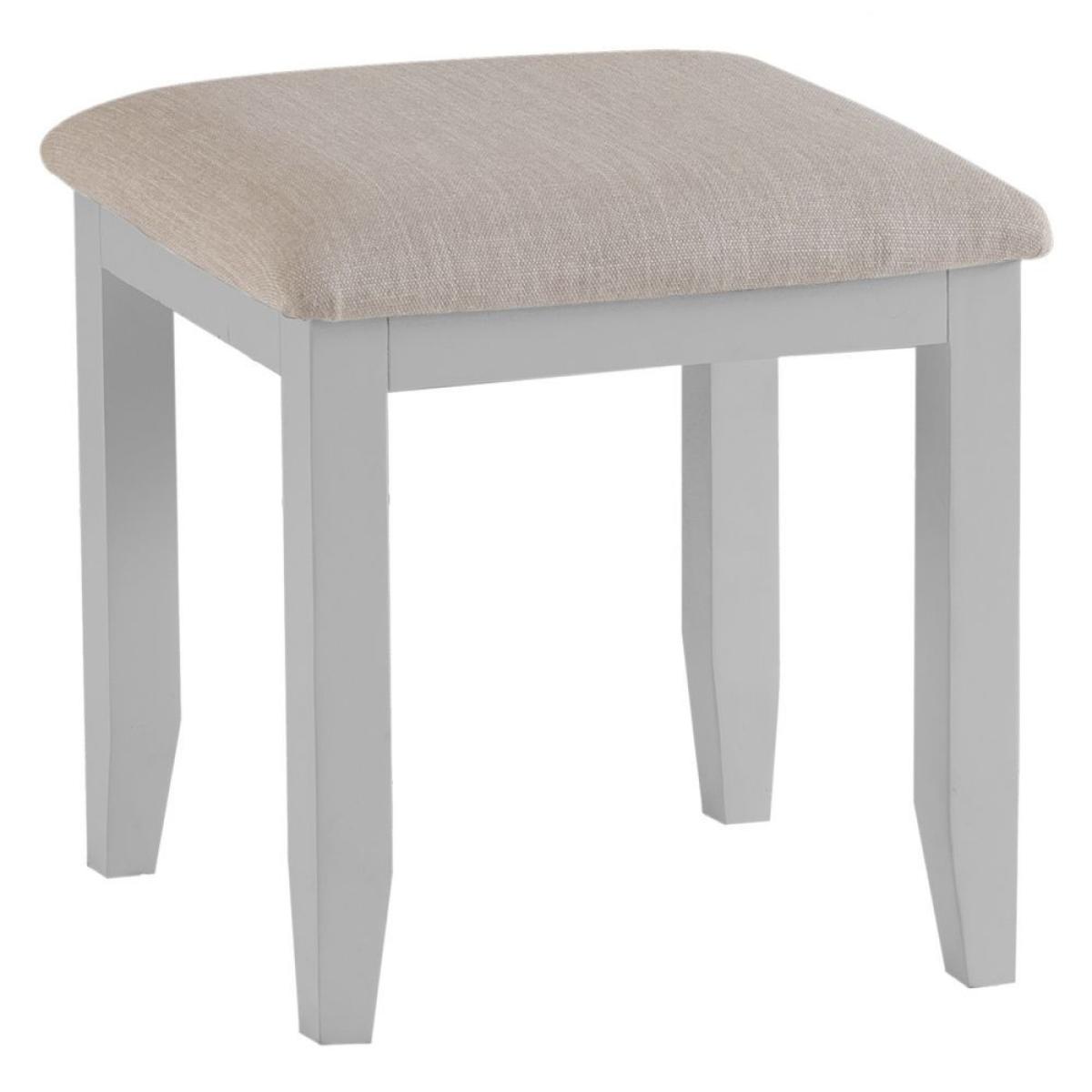 With a contemporary twist to a traditional design, Montreal is a beautifully crafted range with bold, contrasting bespoke silver handles. Design features such as gently bowed fronts, classical corniced tops and turned legs demonstrate attention to detail, whereas practical Blum soft-closing drawer runners, high quality hardware and a durable protective finish all attest to the quality of this elegant range. Centre piece of this collection is the king size upholstered bedstead with stunning diamond stitch patter and refined curved frames, granting Montreal bedroom as updated classic suited to both modern and traditional settings. Please note, this is the Stool only, the Vanity Mirror pictured can be purchased here and the Dressing Table pictured can be purchased here. Finish - Soft Grey Made from - Ash Solid & MDF painted Pebble Grey Fabric - 100% Polyester Assembly required 2 Year Guarantee D: 40cm x W: 53cm x H: 47cm All screens vary in colour reproduction and whilst every effort has been made to display the colour as accurately as possible it is for guidance only.
