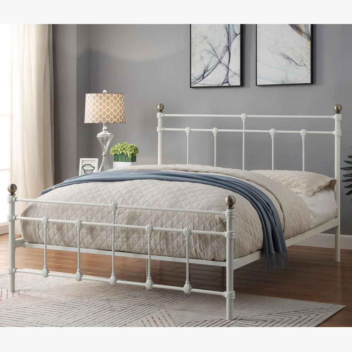 Trentham Vintage Victorian White Metal Bed Frame - White / Double