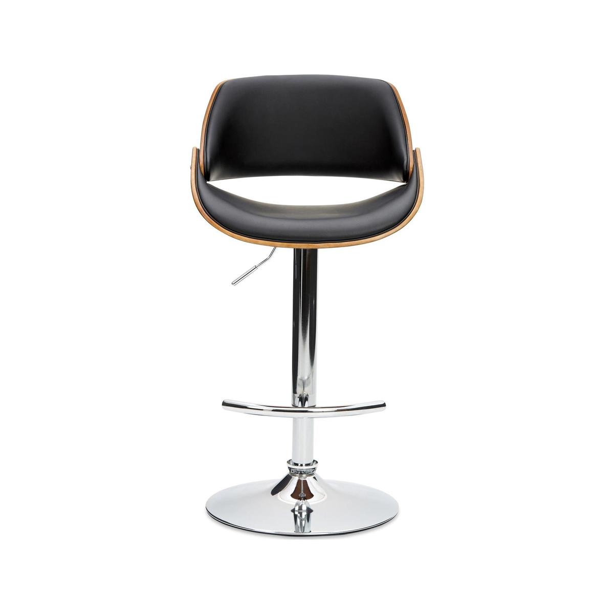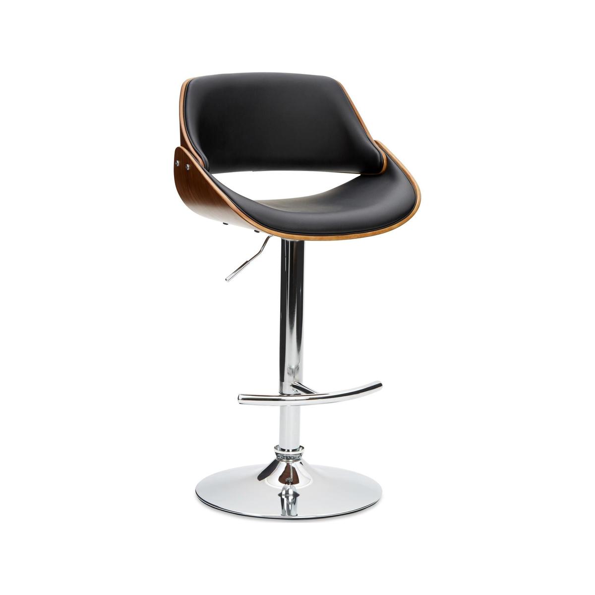 Beautifully designed with 360-degree swivel and a gas lift mechanism, this part-assembly, adjustable bar chair features a black PU covered seat with metal base and a bentwood frame structure.\n\nSeat Height 89cm\nSeat Width 43cm\nSeat Depth 43cm\n\n\nPlease note: Maximum recommended weight is 120Kg.\n\nPlease Note: This product and any of its fabrics have been manufactured for domestic use only.