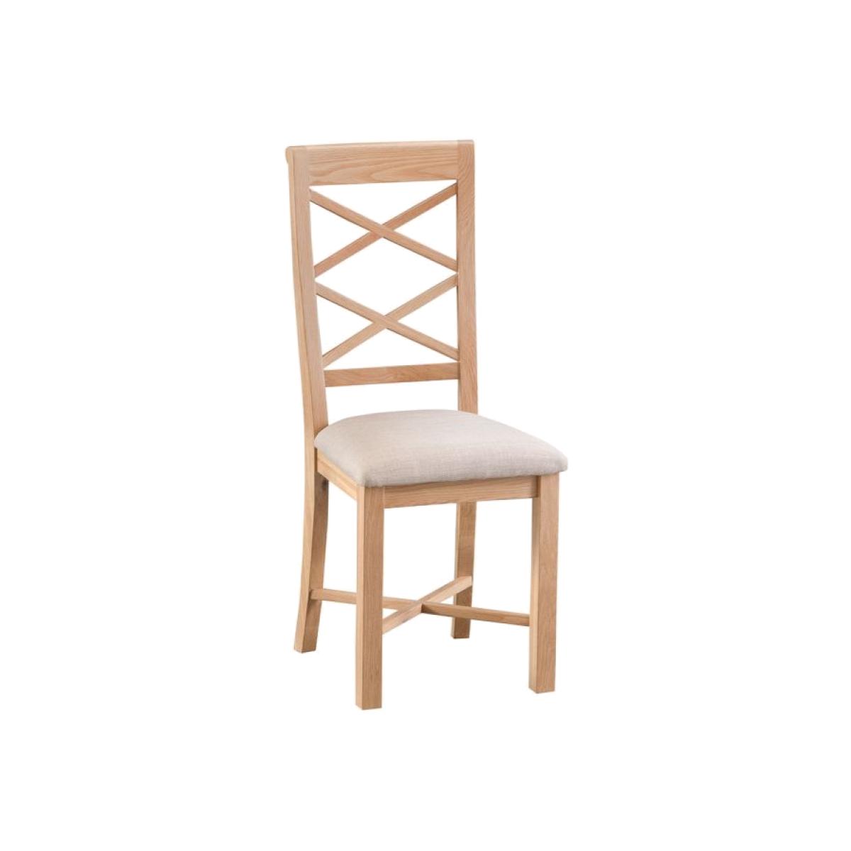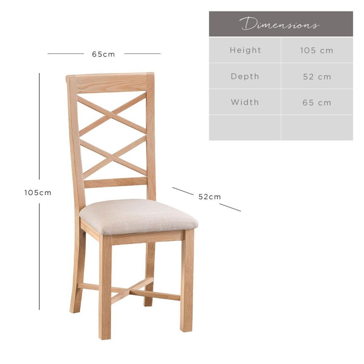 This stunning cross back dining chair will add a touch of Scandinavian style to your dining room. Beautifully crafted with a natural looking finish, the Trento oak dining chair has a superb double cross back detail that'll keep you supported, whilst its padded seat is a soft landing for your bottom. Set these oak dining chairs around your matching Trento dining table to complete the look.