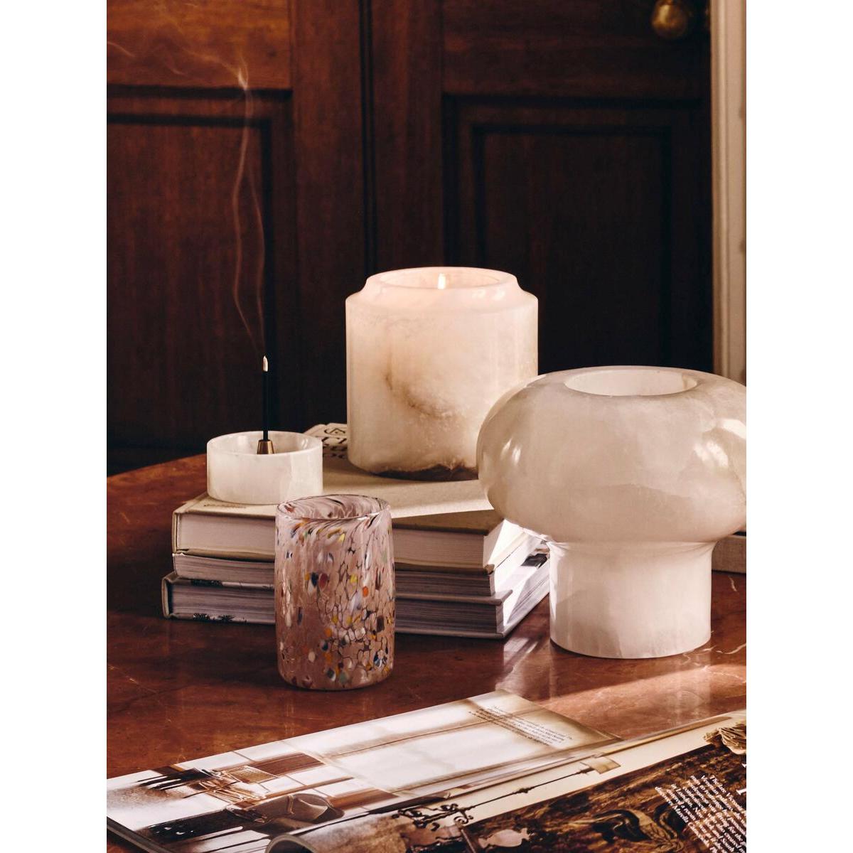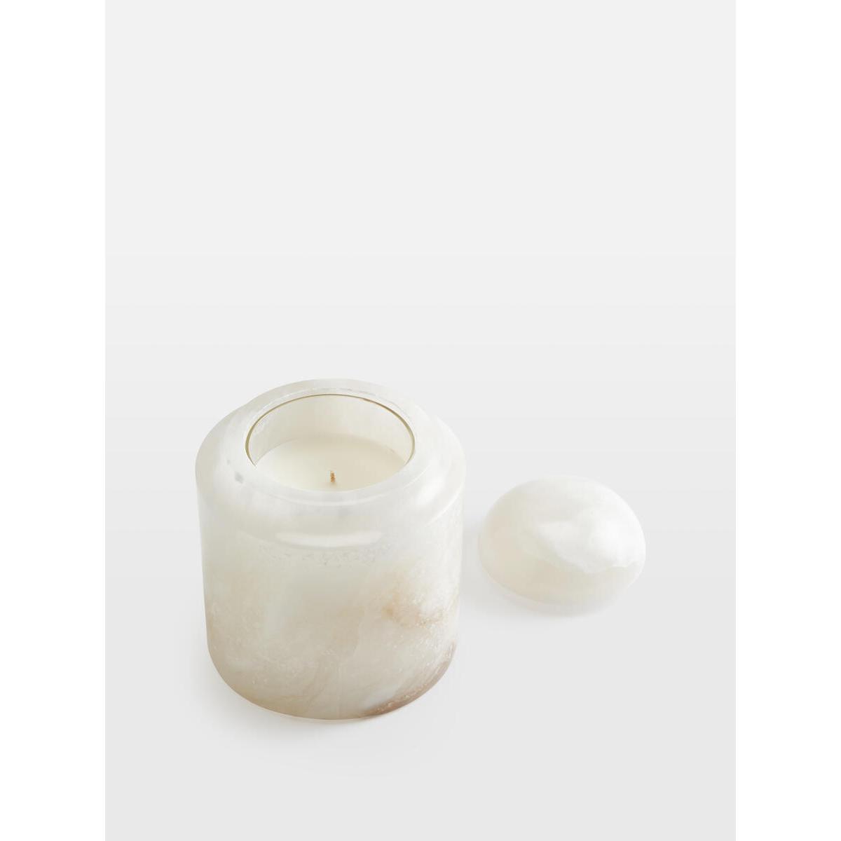 An extension of our bestselling Trento range, this large candle is handcrafted from a block of natural alabaster. The scented wax is hand-poured in England with our Fig Verde fragrance, infused with Green Figs, Dried Fruit and Rose Petals to recall evening strolls around the courtyard garden at Soho House Istanbul. Due to the nature of alabaster the candle has distinctive veinings, which are enhanced by the translucent finish, allowing the candlelight to pass through and create a soft, atmospheric glow. The removable glass liner makes it easy to reuse this one-of-a-kind vessel and bring texture into home displays. Scent notes Top: Cassis Middle: Fig Base: Amber Large Trento candle 350g Infused with our Fig Verde fragrance Handcrafted alabaster vessel with lid and removable glass liner Candle hand-poured in England Each vessel is unique and will vary due to natural variations in the stone Fill weight 350g Fragrance inspired by Soho House Istanbul Bespoke fragrance created by an expert perfumer for Soho House