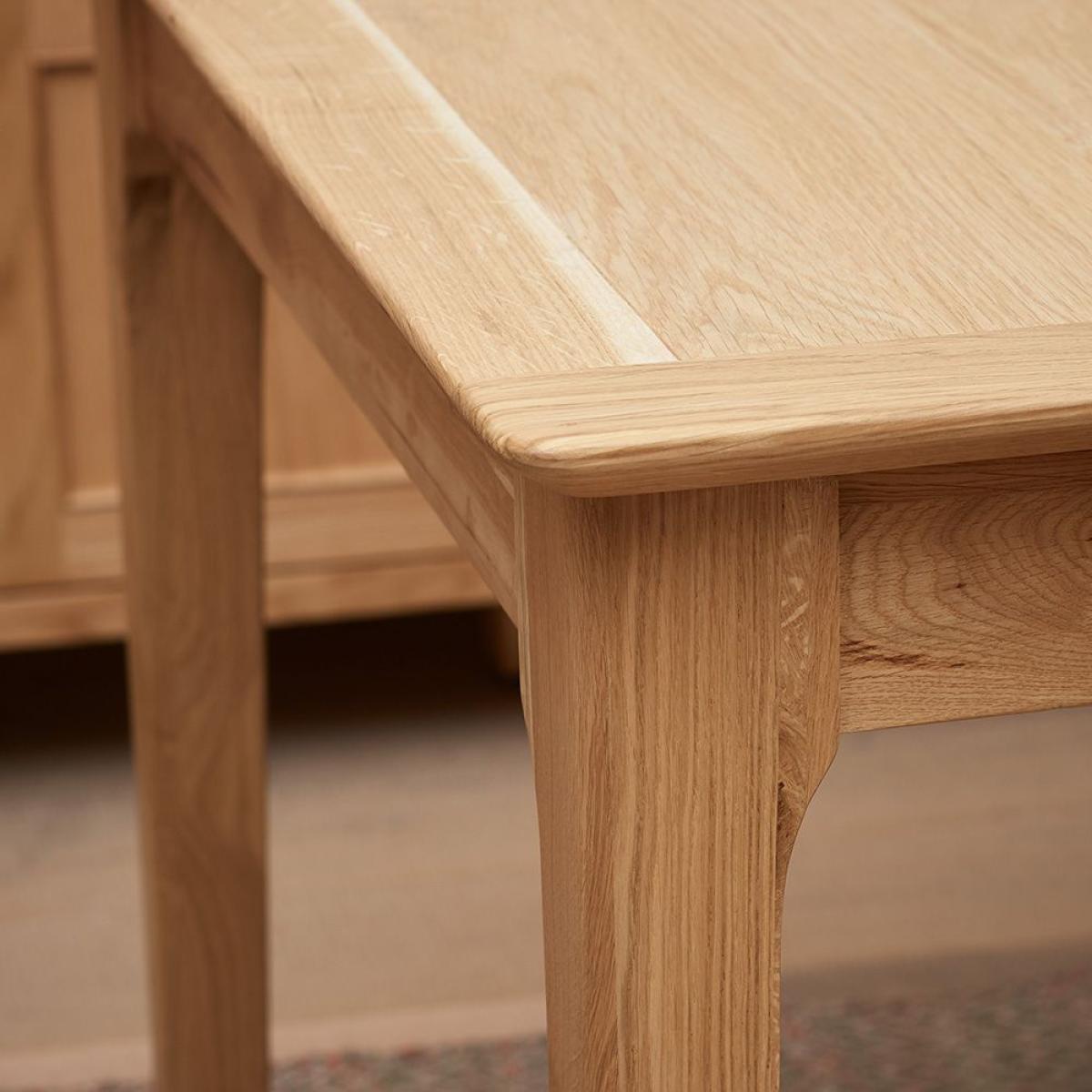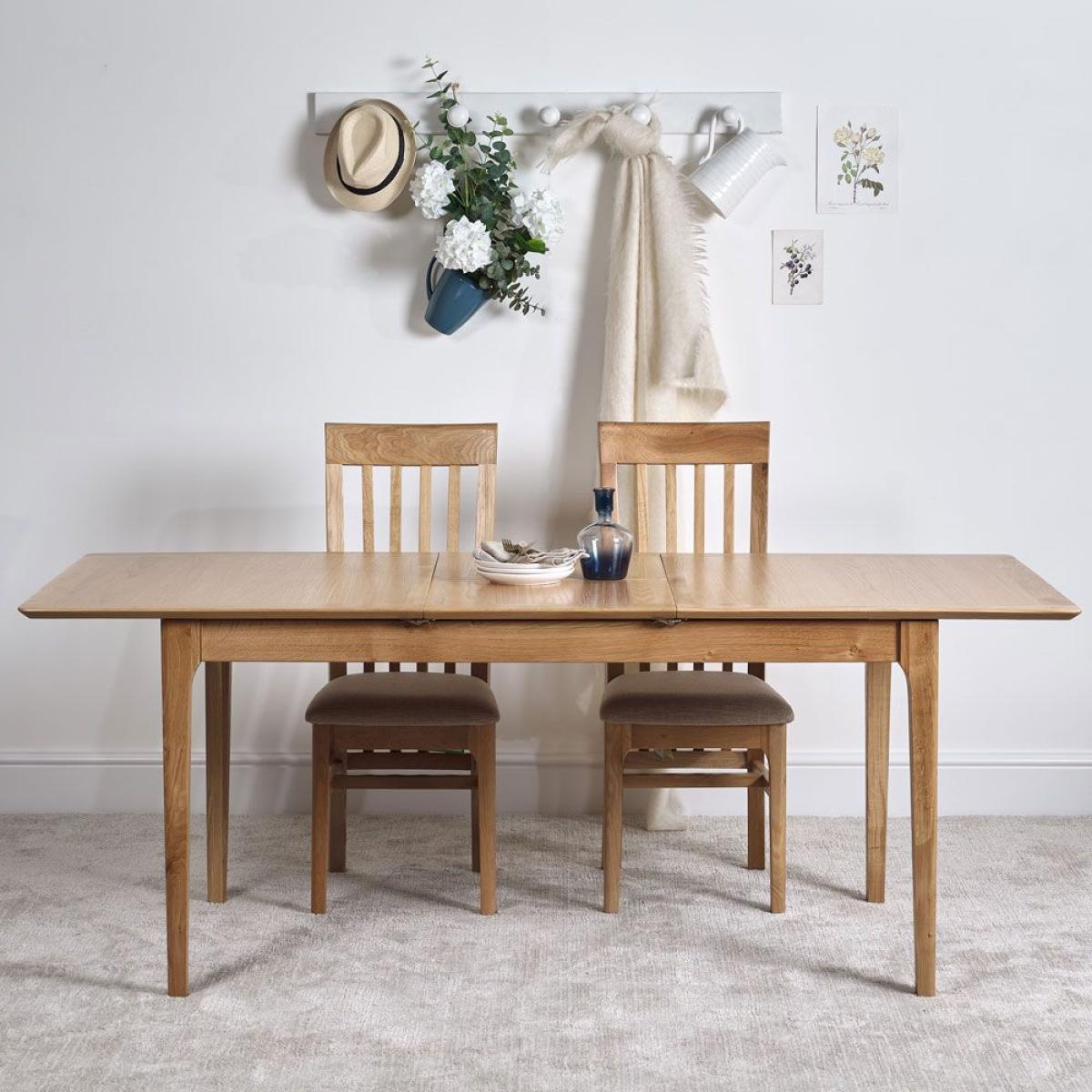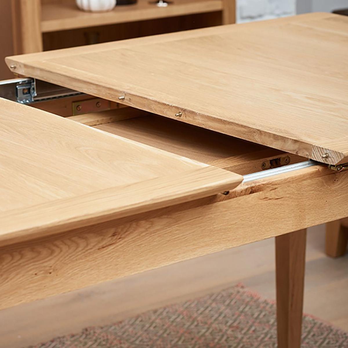 The Trento. Oak extending dining table. Has been beautifully crafted from oak with a natural looking finish. This contemporary large oak dining table will add a touch of Scandinavian style to your home. Ideal for the whole family, the Trento oak extending dining table has an easy to use extension system, that features an aluminium ball bearing for easy glide action. To complete your look, match with some Trento dining chairs, that will perfectly complement this large oak dining table.