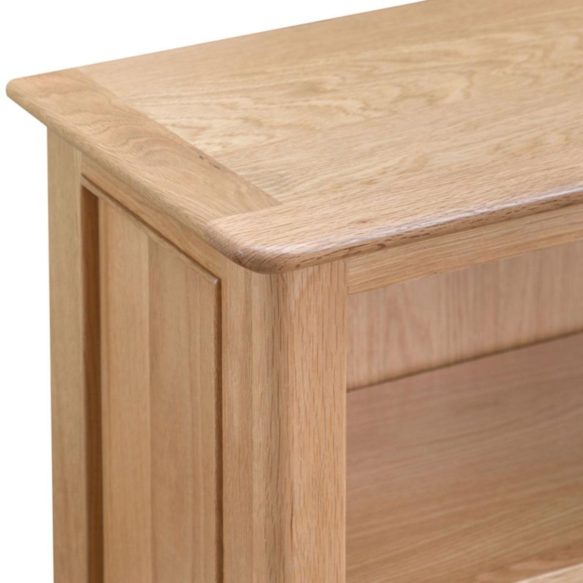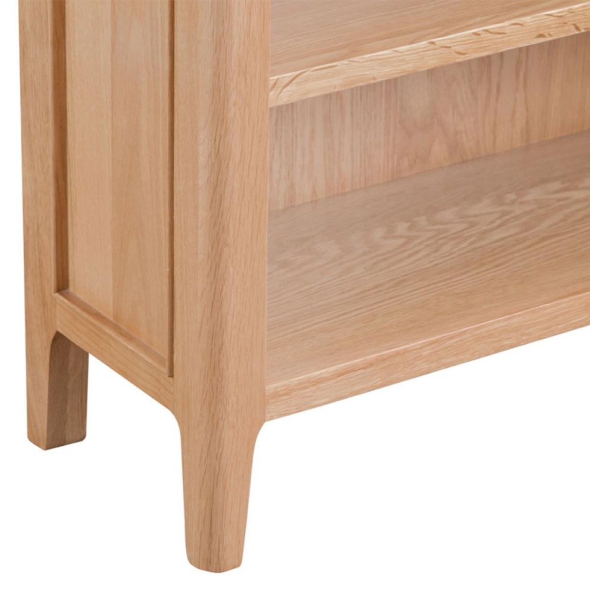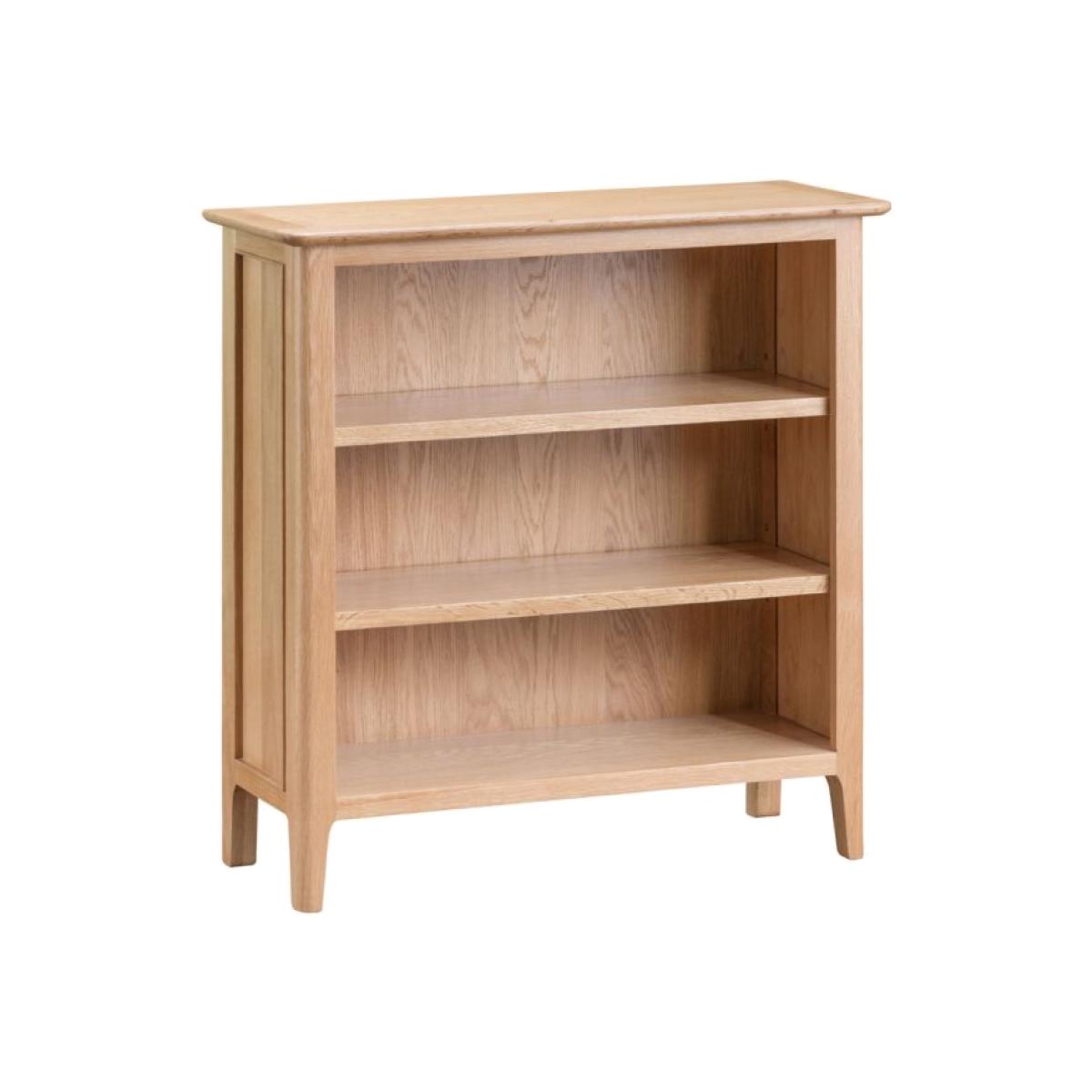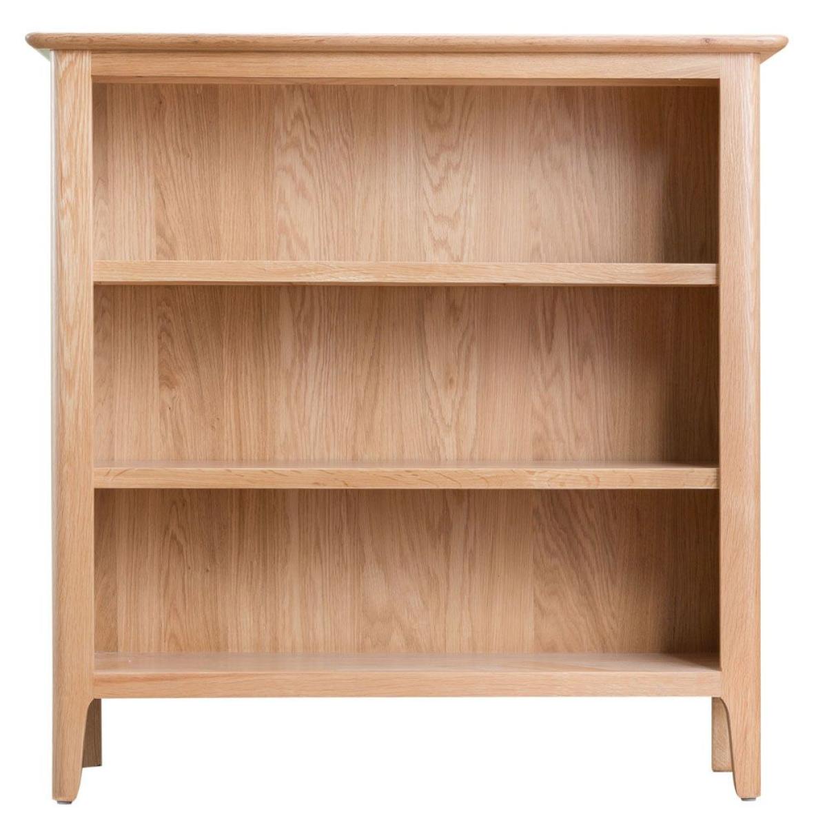 The Trento oak small wide bookcase has been beautifully crafted from oak in a Scandinavian style. With 3 shelves theres lots of room for books and your favourite ornaments. Dimensions W90cm x D30cm x H90cm. Solid oak in construction Complete the look with the rest of the Trento Living Collection Simple self assembly