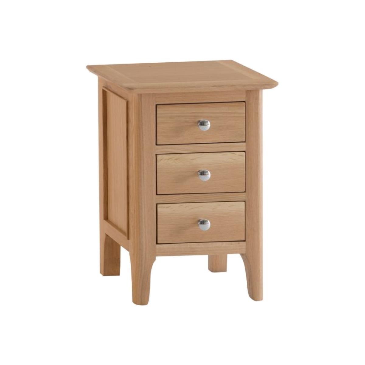 Add a touch of Scandinavian style to your bedroom with this Small Bedside Cabinet from our Trento range. Beautifully put together in solid oak with chrome knobs, it's would look perfect on its own or as a pair either side of the bed.