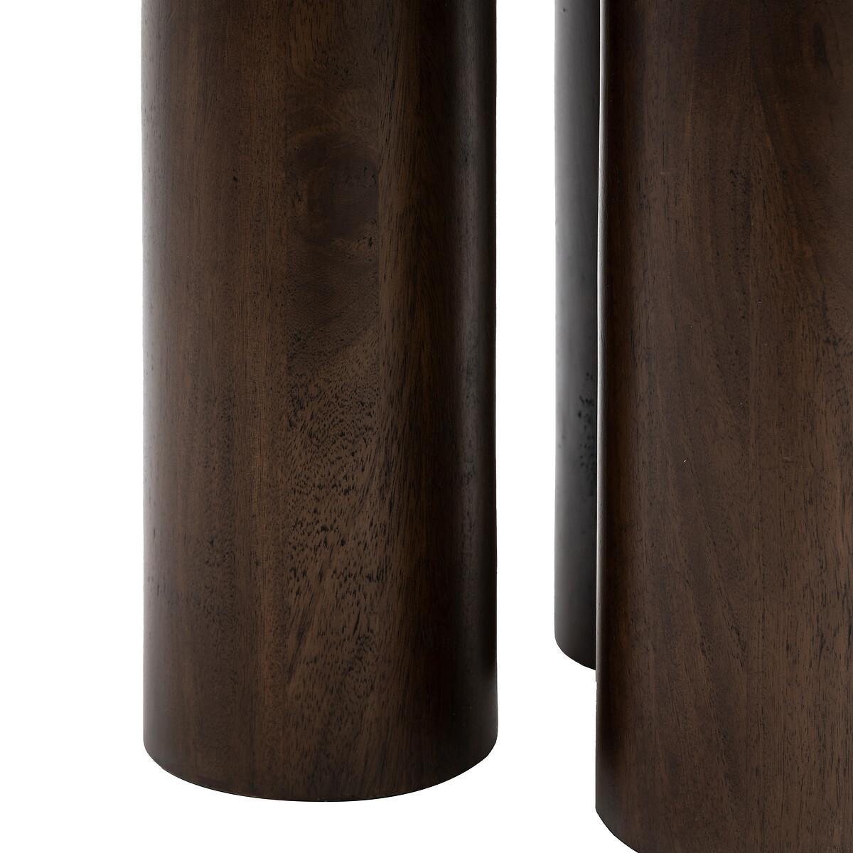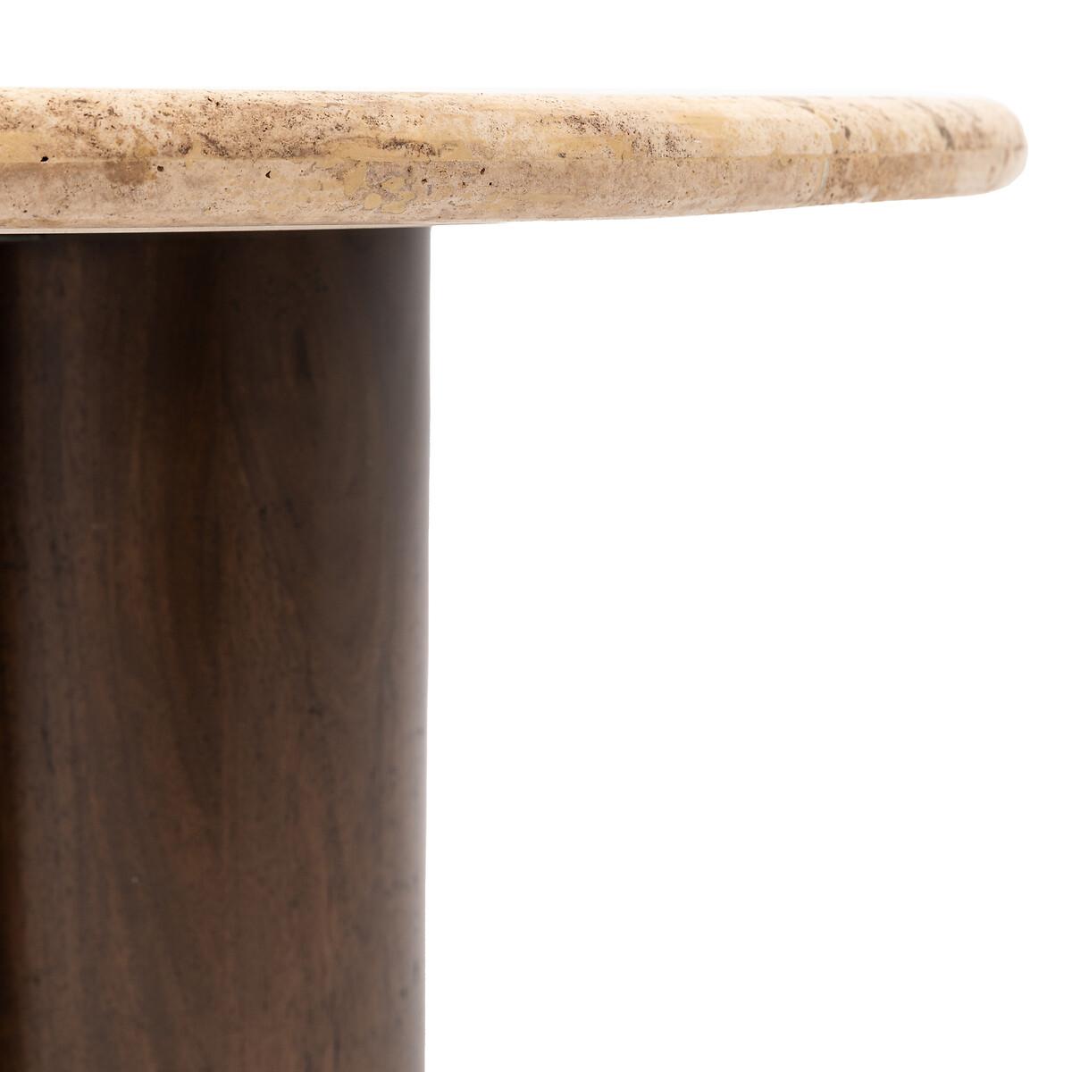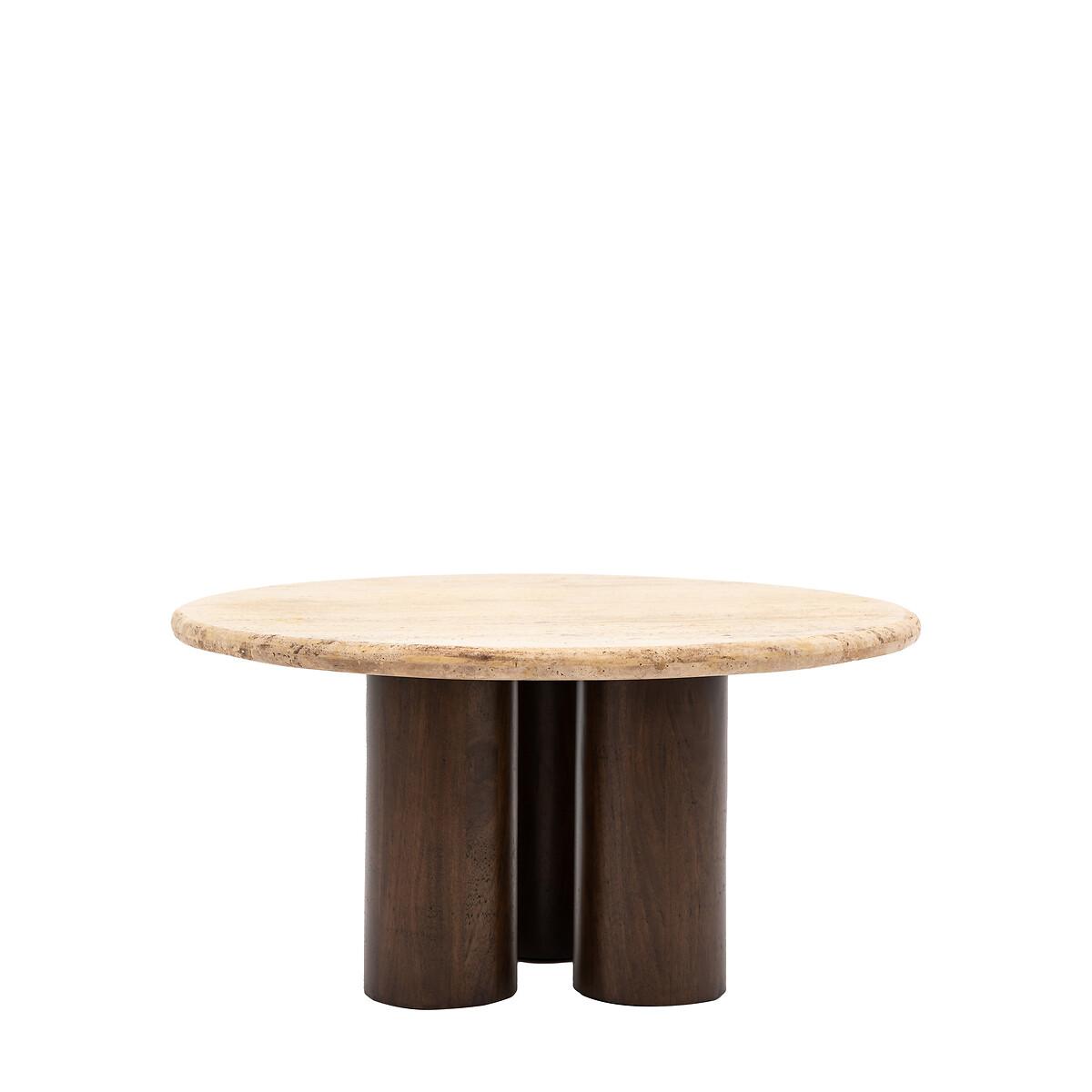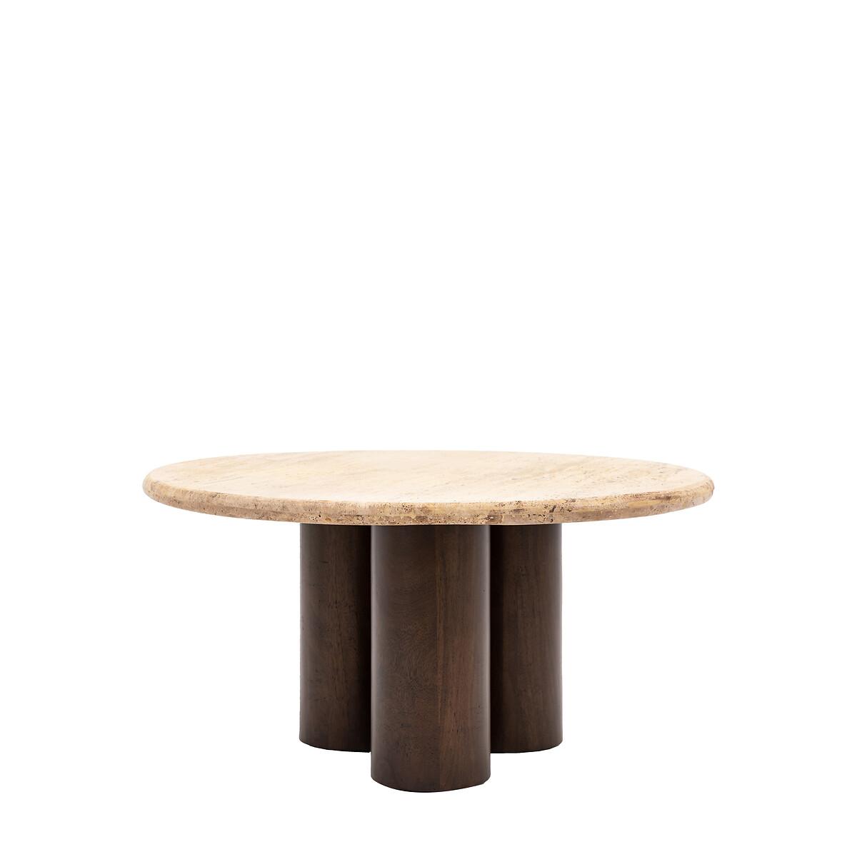 Chunky turned legs, crafted from mango wood, are stained a dark walnut colour, and paired with a natural travertine top. Travertine is a natural stone with unique earthy hues, easier to maintain than marble and granite, and is very hardwearing. Product Details: • Cylindrical mango wood legs • Solid travertine table top • Assembly required • 1 year manufacturers warranty. Product Composition - Travertine 60% / Mango Wood 40% Product Dimensions - 75 cm x 75 cm x 38 cm, Weight 37 kg Parcel 1 Packaged Dimensions - 91 cm x 91 cm x 14 cm, Weight 33.61 kg Parcel 2 Packaged Dimensions - 56 cm x 45 cm x 25 cm, Weight 16.2 kg. This product will be dispatched by one of our trusted suppliers. You’ll be contacted by their selected courier about your delivery. Please note: this product cannot be delivered to all Offshore Islands, Northern Ireland or Republic of Ireland.