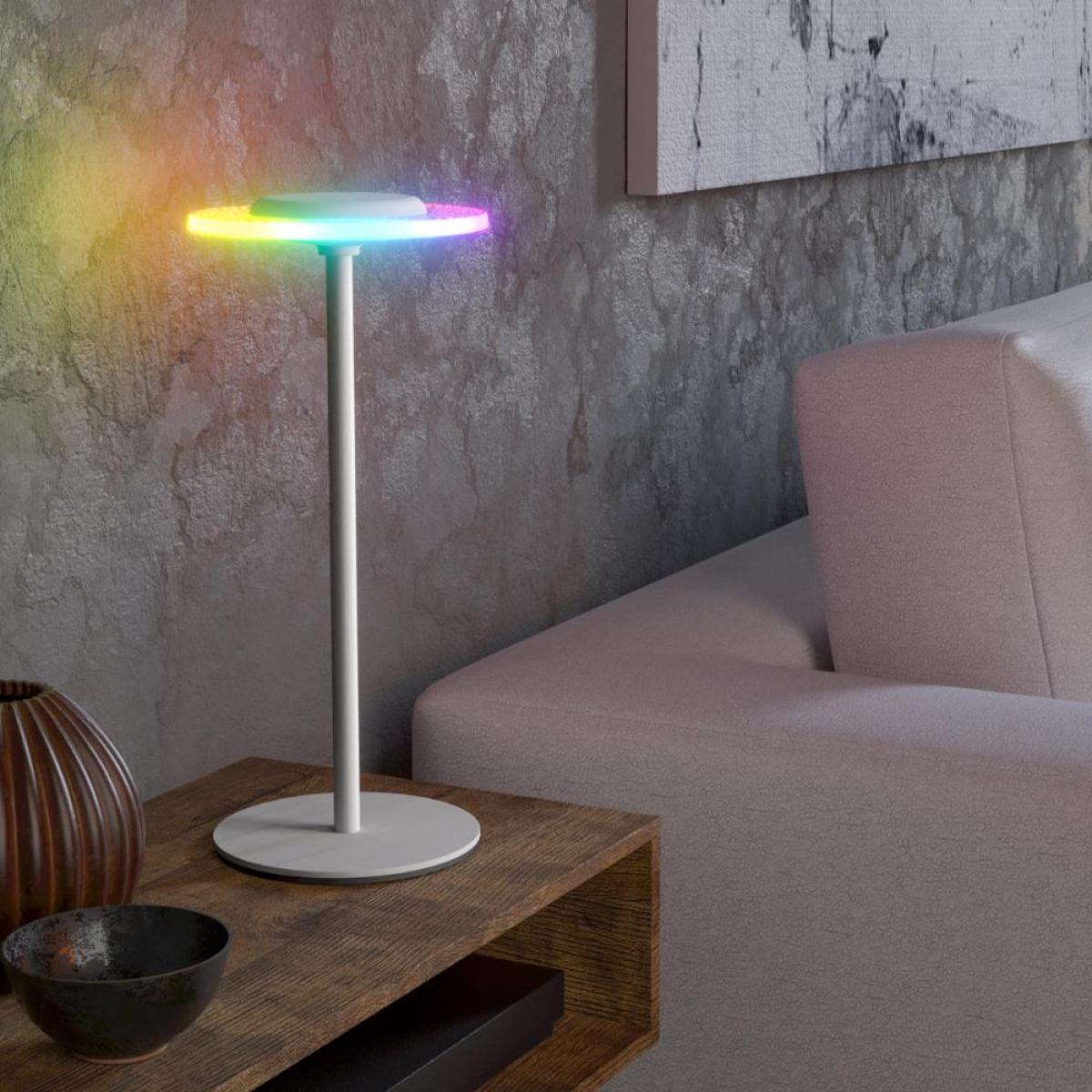 The is a modern rechargeable desk lamp with RGBW functionality, easily operated via touch control. It offers two colour modes with smooth colour transitions as well as a 3000. K setting for warm white light. Thanks to its wireless design, it is flexible to use and can be conveniently recharged via a USB-C cable. Its elegant white casing makes it a stylish lighting accent for any environment.