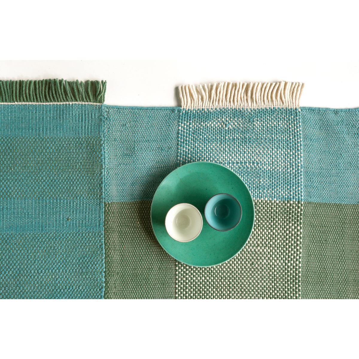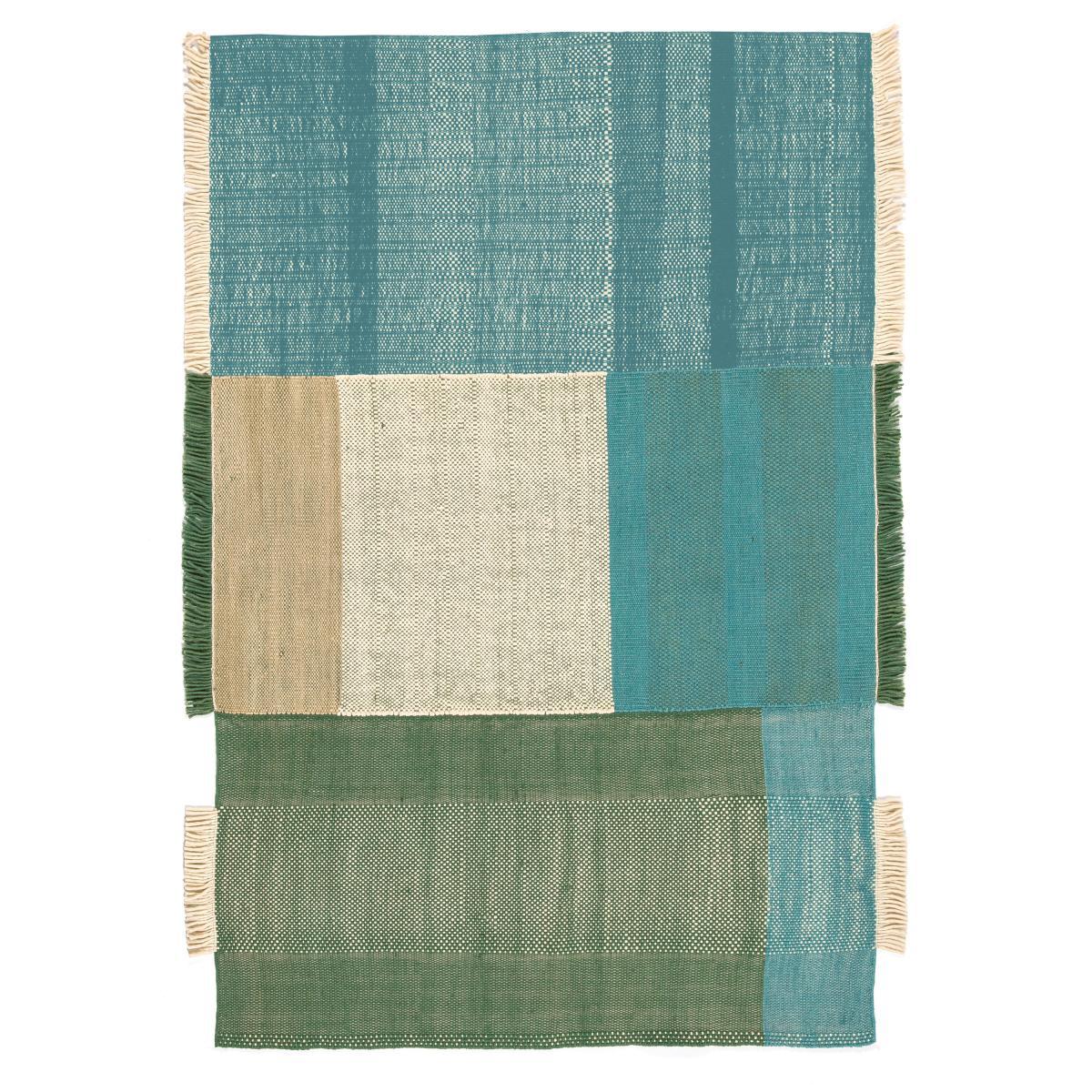 The Tres Collection reflects nanimarquina's passion for craftsmanship, specifically paying tribute to the ancient craft of weaving. With this collection, the desire is to reclaim the basics, to appreciate the beauty in details and respect tradition. Tres is a traditional Indian flat-weave Dhurrie rug. Its unique quality lies in the production of three independent parts in which different fibres predominate. The proportion and combination of wool, felt, and cotton generate changes in tone and irregularities in the weave, bringing the pattern to life. The collection is an exercise in honesty, showcasing the weaving structure almost in a pedagogically style, without fear of revealing the warp. The fringes also help to understand the construction process thus enhancing the differentiation between the three pieces that finally blend together invisibly.