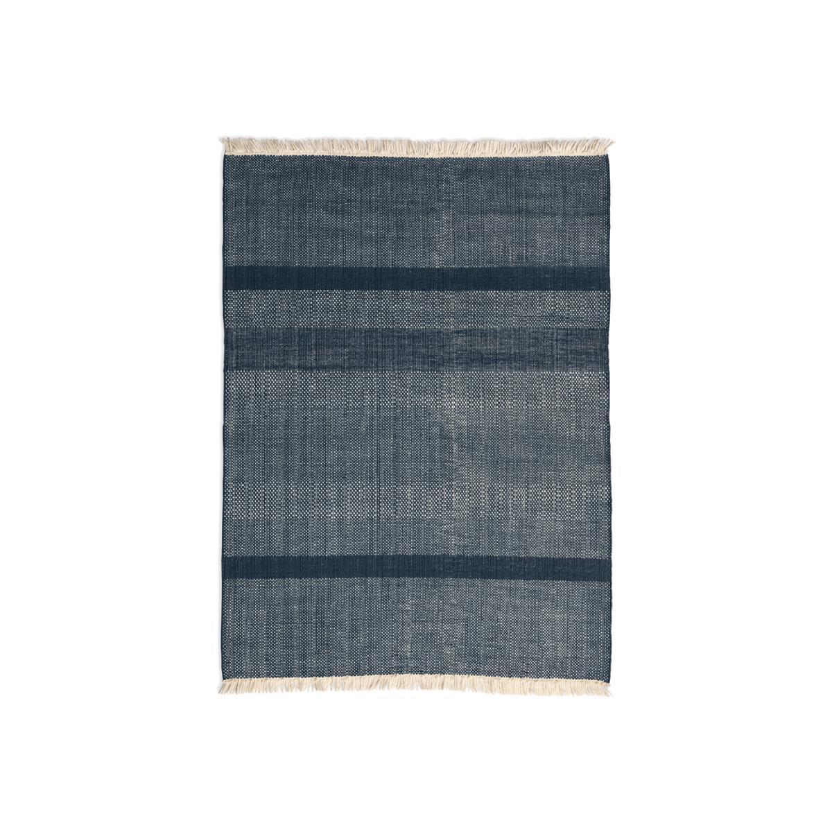 Designed by Elisa Padrón and Nani Marquina for the eponymous design house nanimarquina, the small Tres Texture Rug in a blue colourway will transform your living space. The flat-weave rug has been expertly hand-woven by skilled artisans using a hand-spun fabric composed of 49% New Zealand wool, 45% wool felt and 6% cotton, materials that have been chosen for their lightweight yet resistant texture. A contemporary interpretation of a traditional Dhurrie, this rug is created using three individual pieces that have each been dyed to create a unique finish. Handcrafted on traditional horizontal looms, Dhurries are renowned for their incredible colours and intricate, inimitable designs. Founded in 1987 by Nani Marquina, the daughter of pioneering Spanish designer Rafael Marquina, nanimarquina blends contemporary designs with traditional techniques to create unique and eye-catching handcrafted rugs. nanimarquina collaborates with prestigious international designers to design unique rugs and crafts them with particular attention to selecting quality raw materials. Care instructions: Can be dry cleaned.