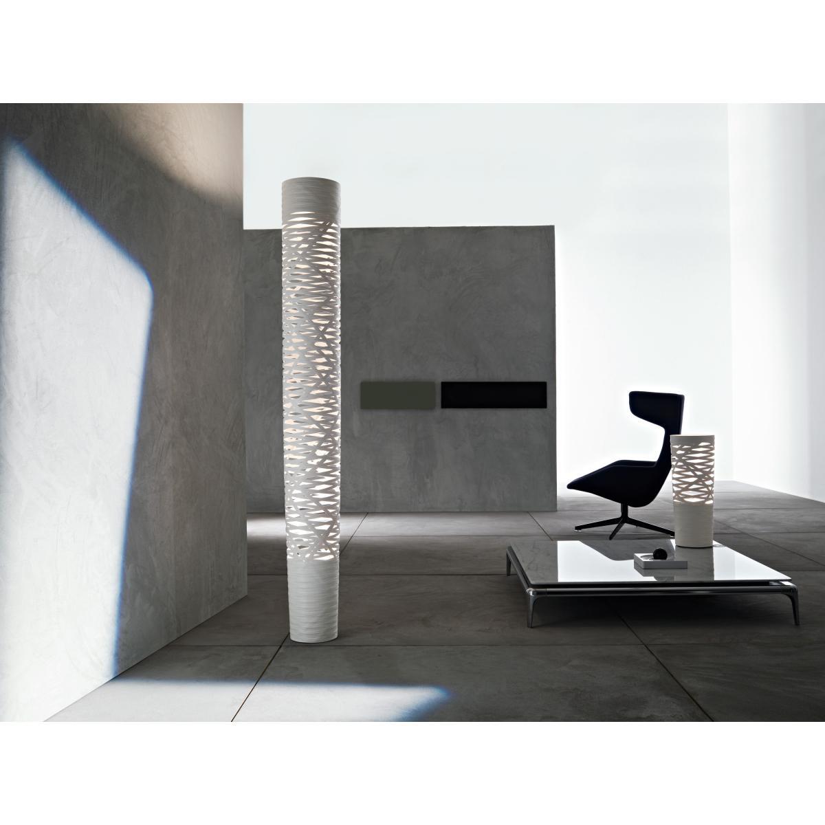 A new lamp by milan-based designer marc sadler. Tress is made from interwoven threads that have been soaked in resin and cast in a long cylinder. The texture of the material is reminiscent of traditional woven fibres like baskets and high tech materials like carbon fibre. The lamp's random interwoven patterns create distinctive shadows that are cast outwards.