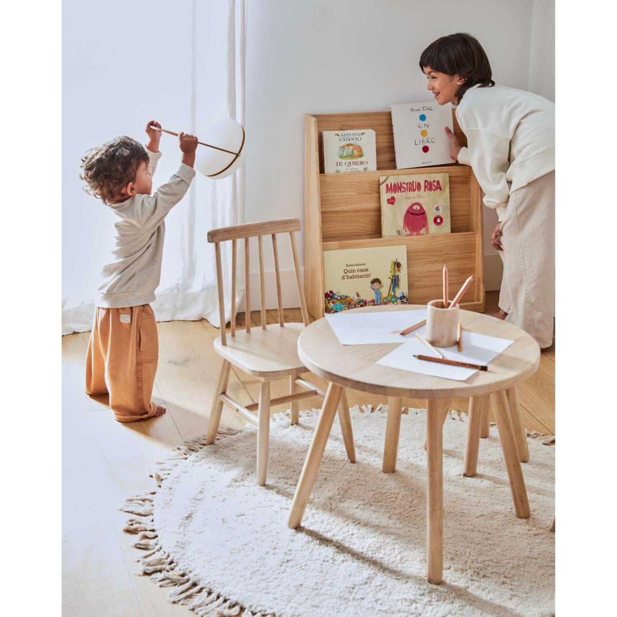 I love this little chair for its simplicity and natural charm, making it a versatile piece in any child-focused space. Its solid rubber wood finish gives it a durable, timeless look that pairs well with both modern and traditional interiors. It works particularly well in Scandi or minimalist settings, adding warmth without overwhelming the room. To style it practically, consider layering with colourful cushions or a small, playful throw to introduce pattern and texture. It can also double up as a cute corner seat in a reading nook or alongside a child’s desk, making it both functional and visually appealing.