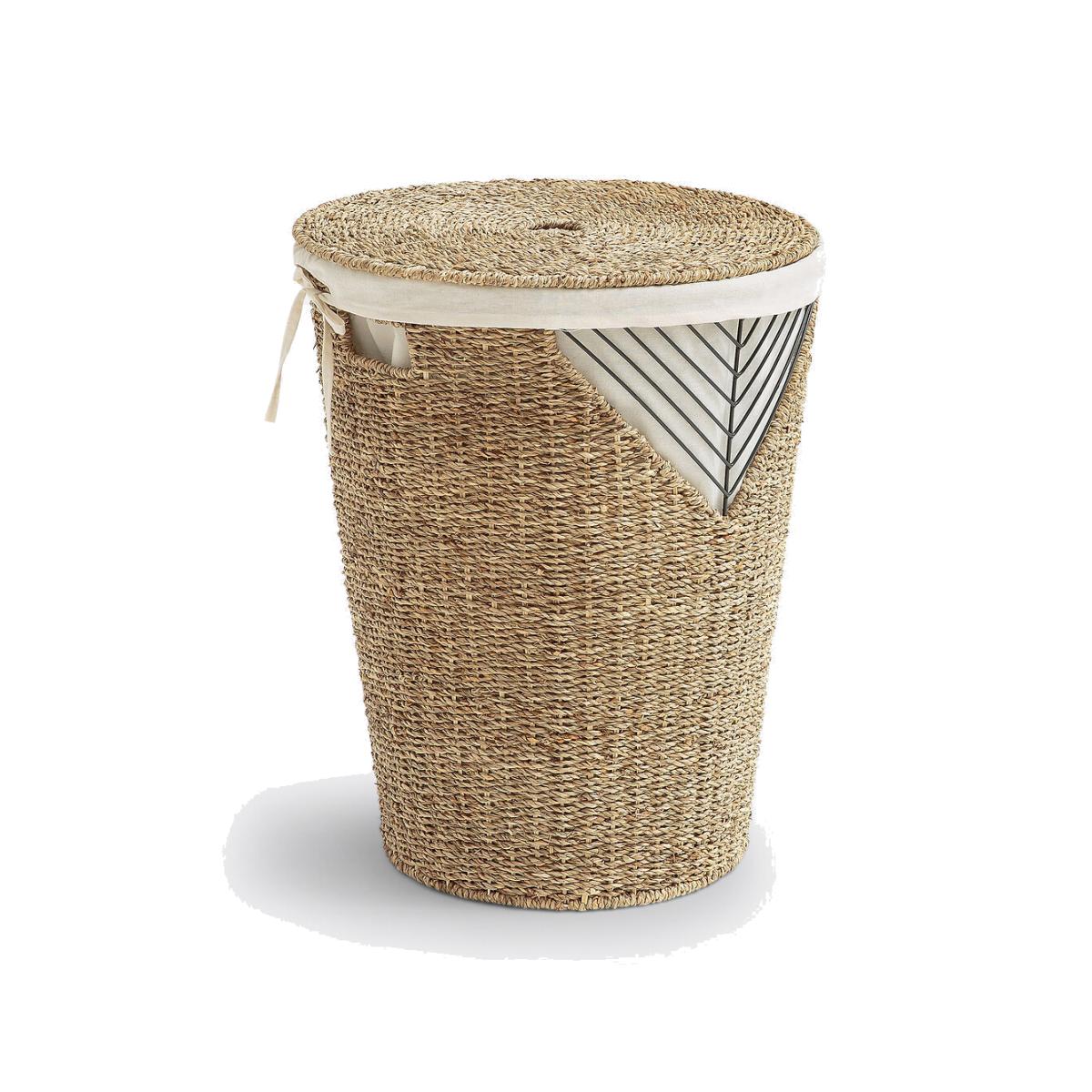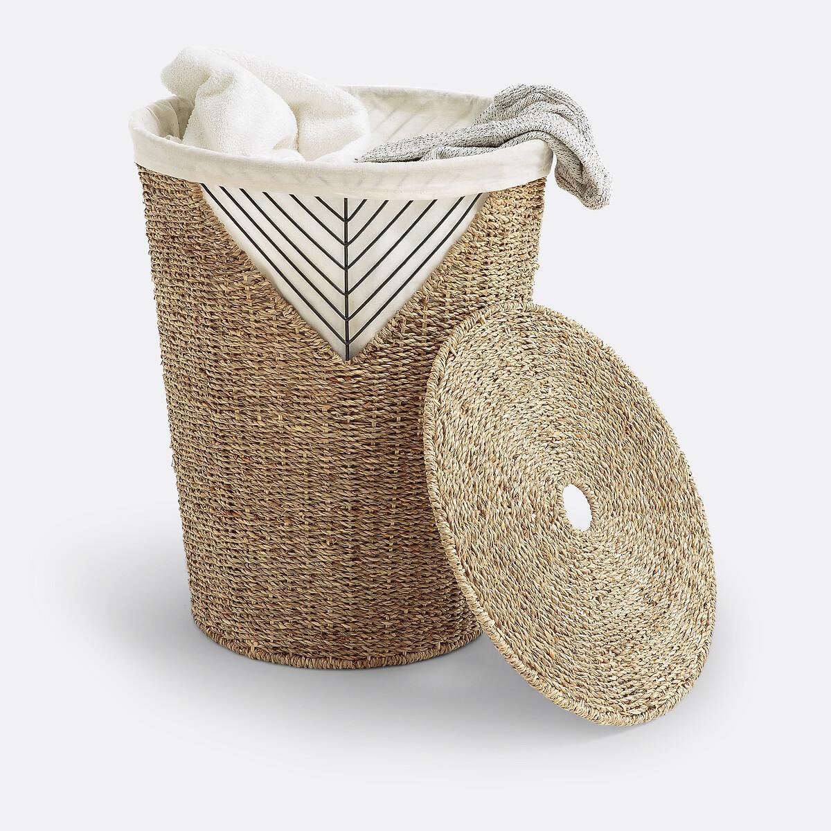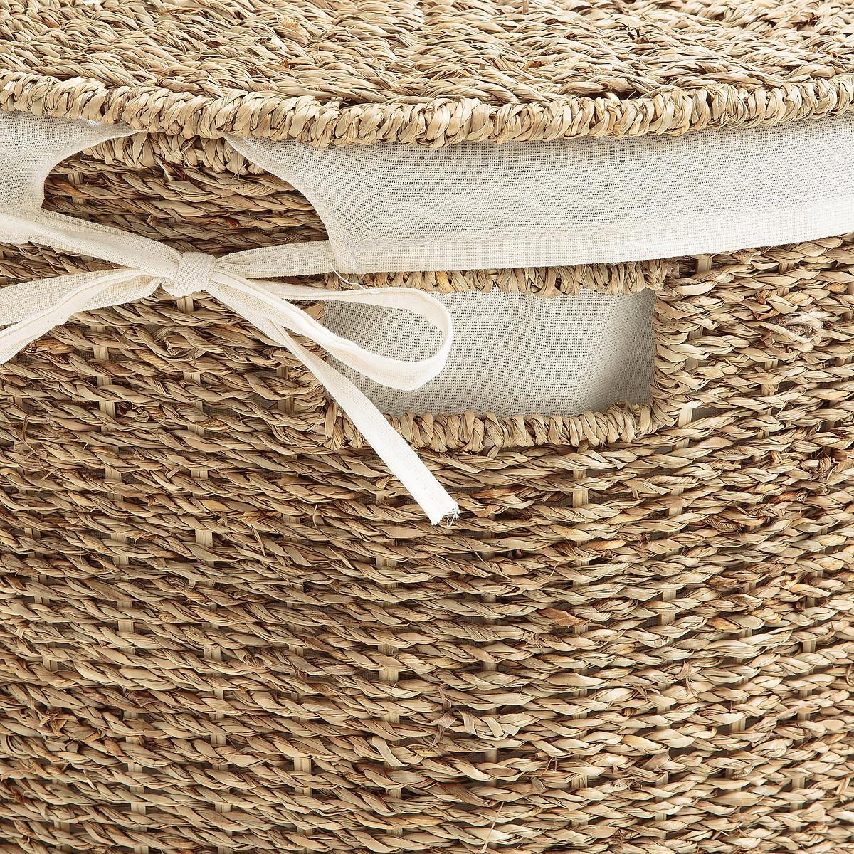 The laundry basket. Handcrafted, it brings a natural touch to your bathroom, or any other room in the house. Product Details • Braided seagrass, openwork pattern • Metal structure • 2 handles • 1 lid. Dimensions • Diameter. 44 x H55cm Parcel dimensions and weight: • 1 parcel • 45 x 45 x 57.5cm. • 4.2kg. Home Delivery:It will be delivered to your door!Note! Please check that all access points are large enough to accommodate your delivery (doors, stairs, lifts).