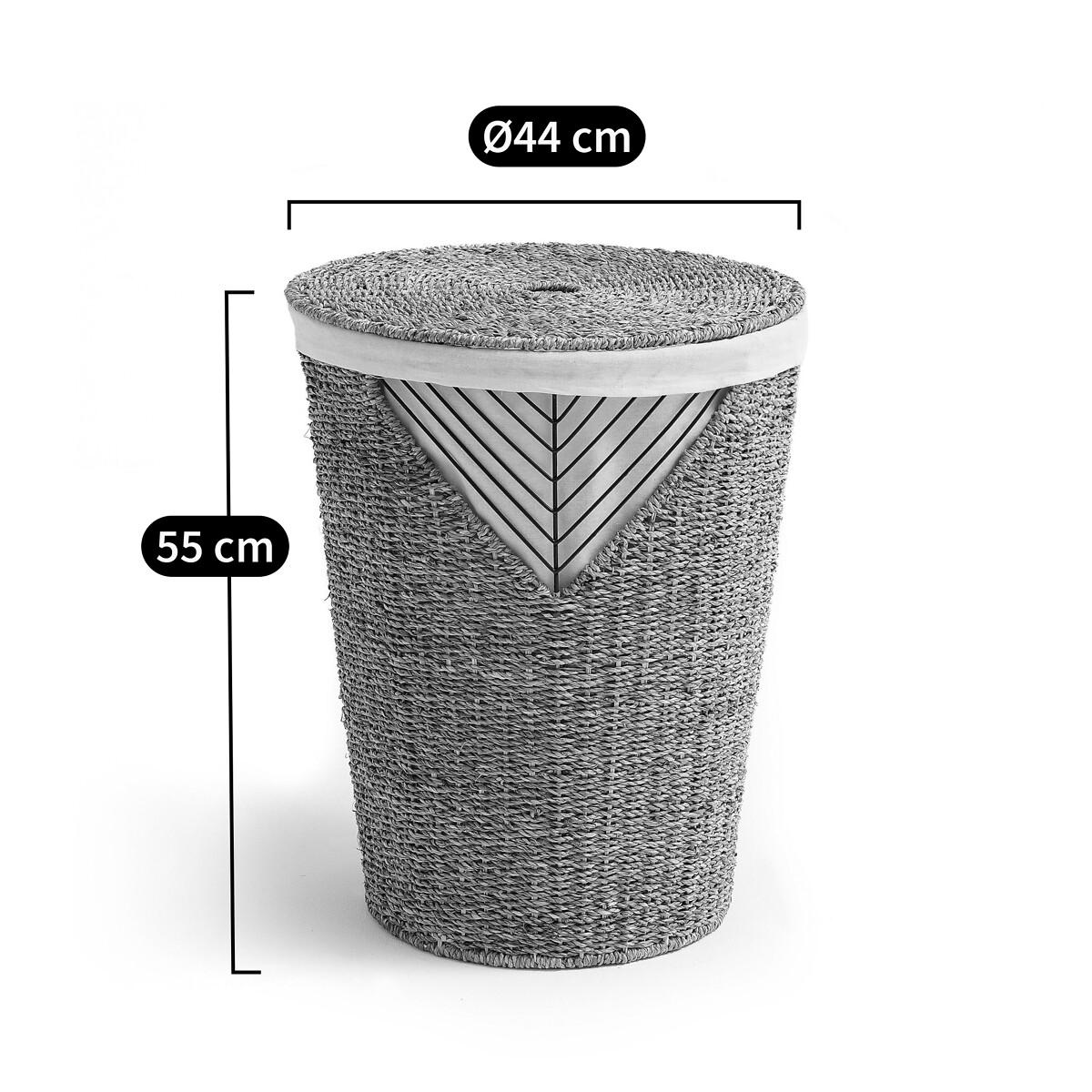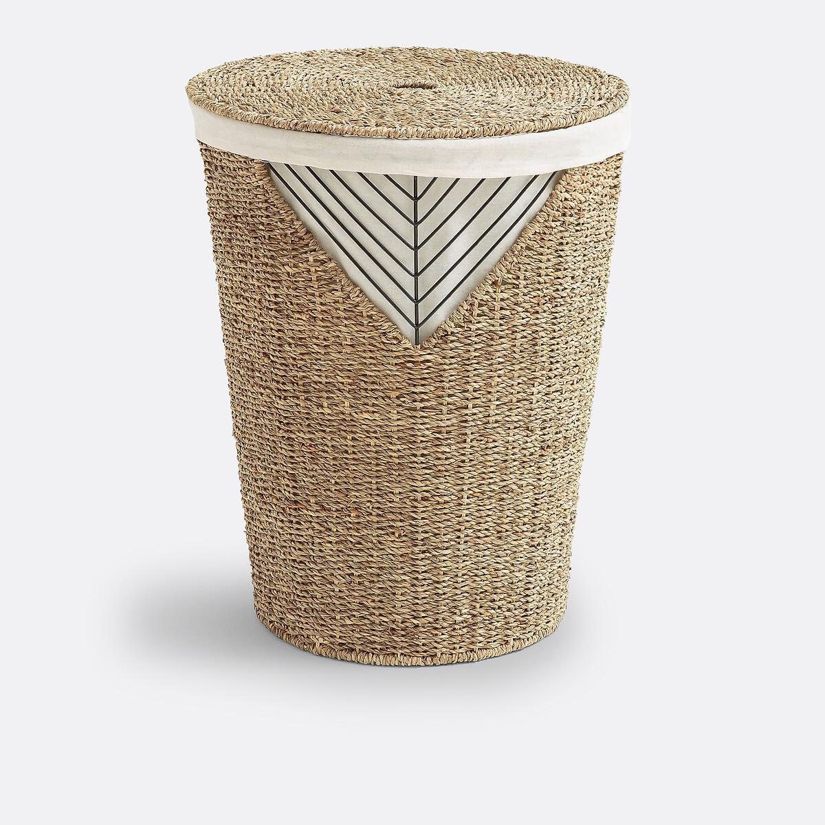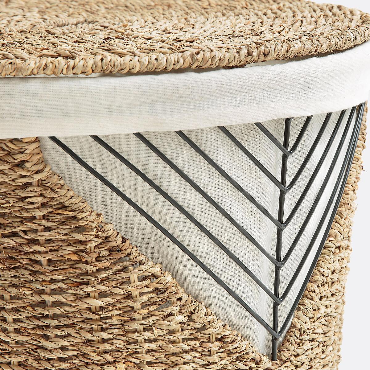 The laundry basket. Handcrafted, it brings a natural touch to your bathroom, or any other room in the house. Product Details • Braided seagrass, openwork pattern • Metal structure • 2 handles • 1 lid. Dimensions • Diameter. 44 x H55cm Parcel dimensions and weight: • 1 parcel • 45 x 45 x 57.5cm. • 4.2kg. Home Delivery:It will be delivered to your door!Note! Please check that all access points are large enough to accommodate your delivery (doors, stairs, lifts).