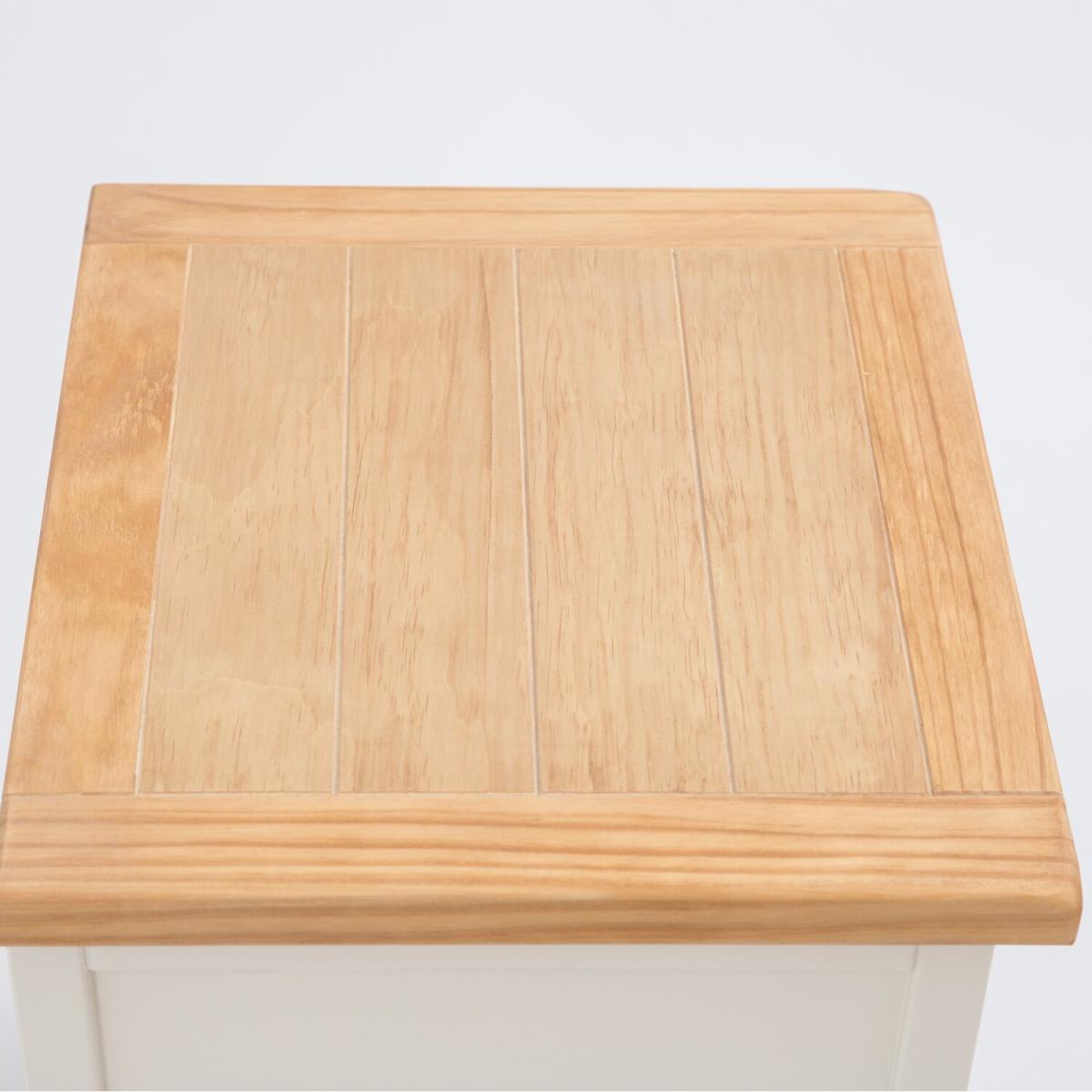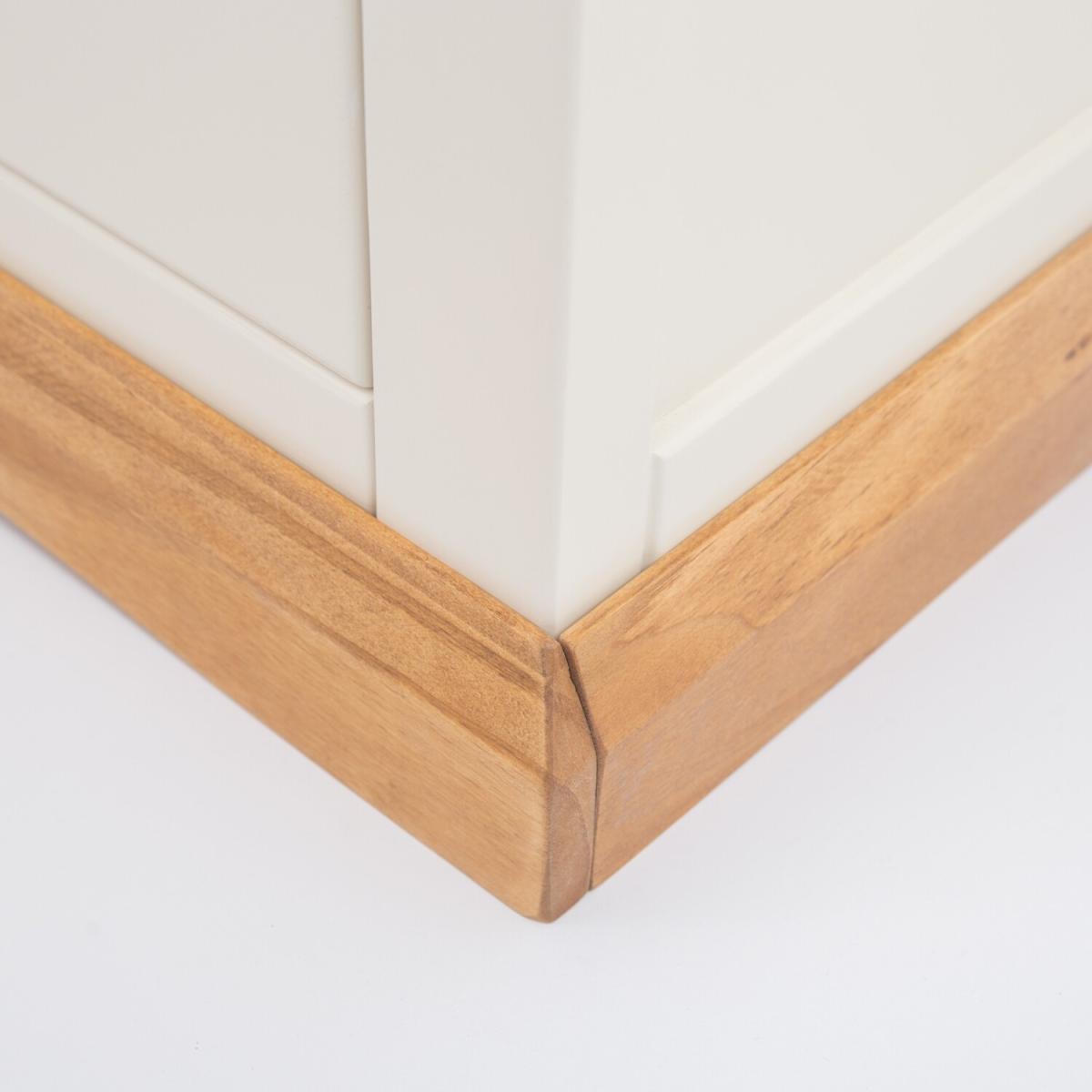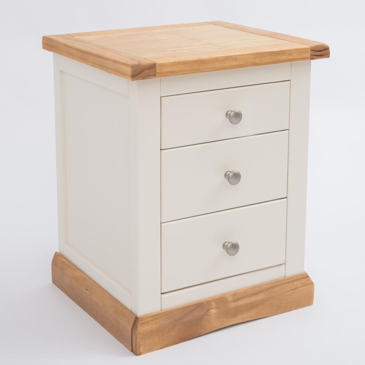 Our Trevi collection has a simple but pleasing design and is produced by our skilled craftsmen to the highest standards using responsibly sourced wood and veneers. All tops are made using a combination of solid pine wood and veneers and are carefully hand-waxed giving them a great look. The body is finished with high-quality eco-friendly water-based paint in an off-white colour. A combination of drawer sizes means this 3-drawer bedside allows for flexible storage. The top drawer is shallow and perfect to house your reading material, medication or jewellery. The two drawers below are deeper and ideal for storing underwear or accessories. These attributes combined with a simple construction for easy assembly make it a great value product to be taken home today.