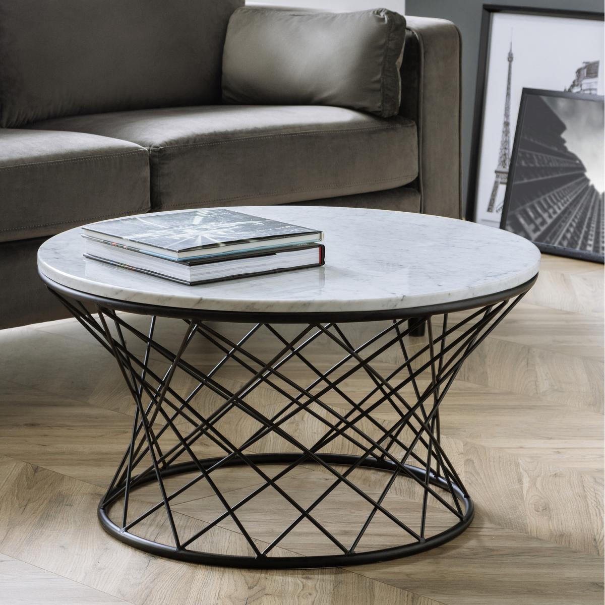 Refresh your living room with the Trevi Coffee Table. Finished with a real white marble top, and a distinctive black wire metal base, this hardwearing design offers a unique, modern look suitable for a range of decor. Each top is slightly different due to the marble's unique nature, giving every coffee table an individual character.