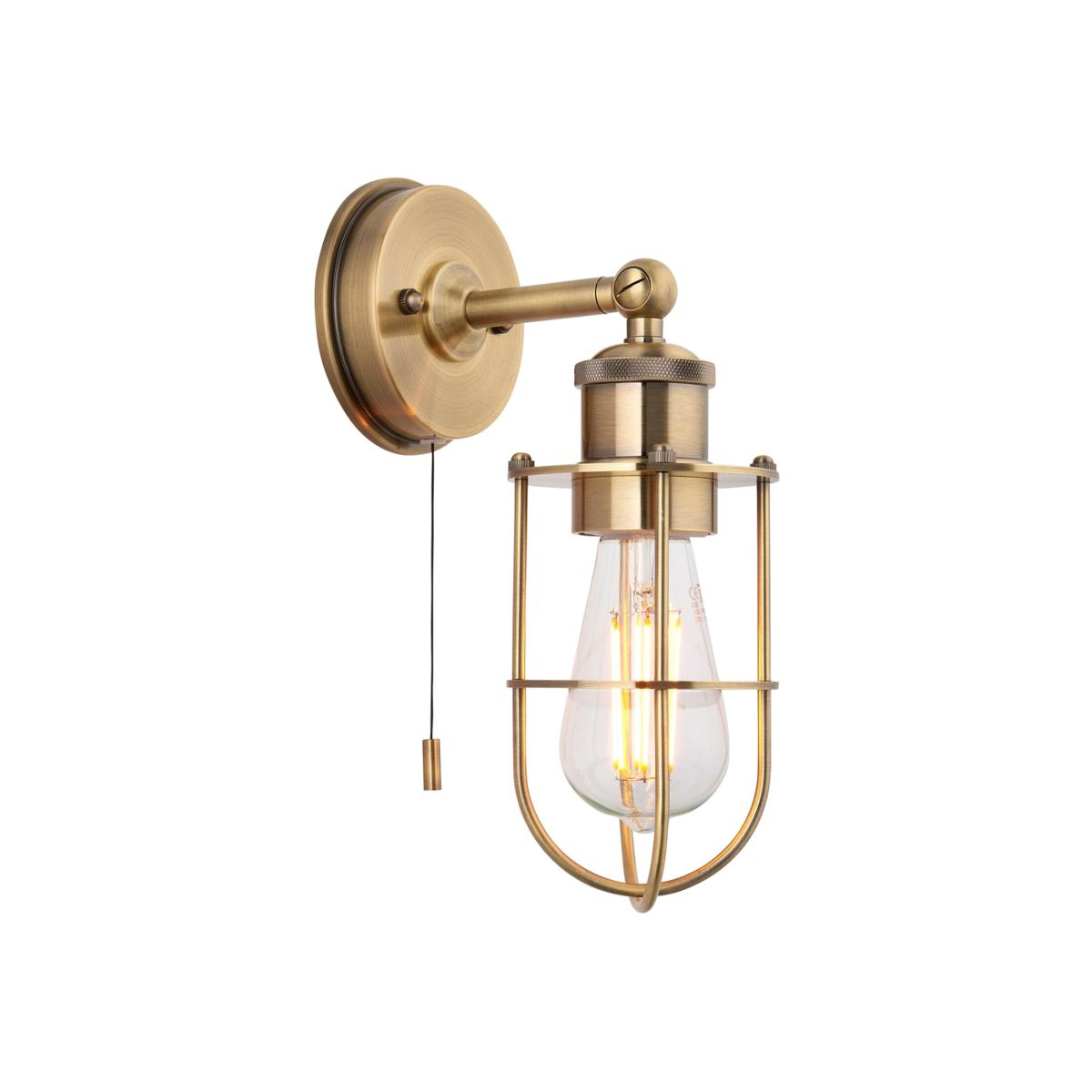 Update your bathroom aesthetic with the industrial-inspired Treviso Antique Brass Plate and Metal Bathroom Wall Lamp. The wire cage frame will show off a decorative bulb beautifully and allow brilliant illumination to fill the space. The convenient on-off cord is all you need for helpful and practical light.