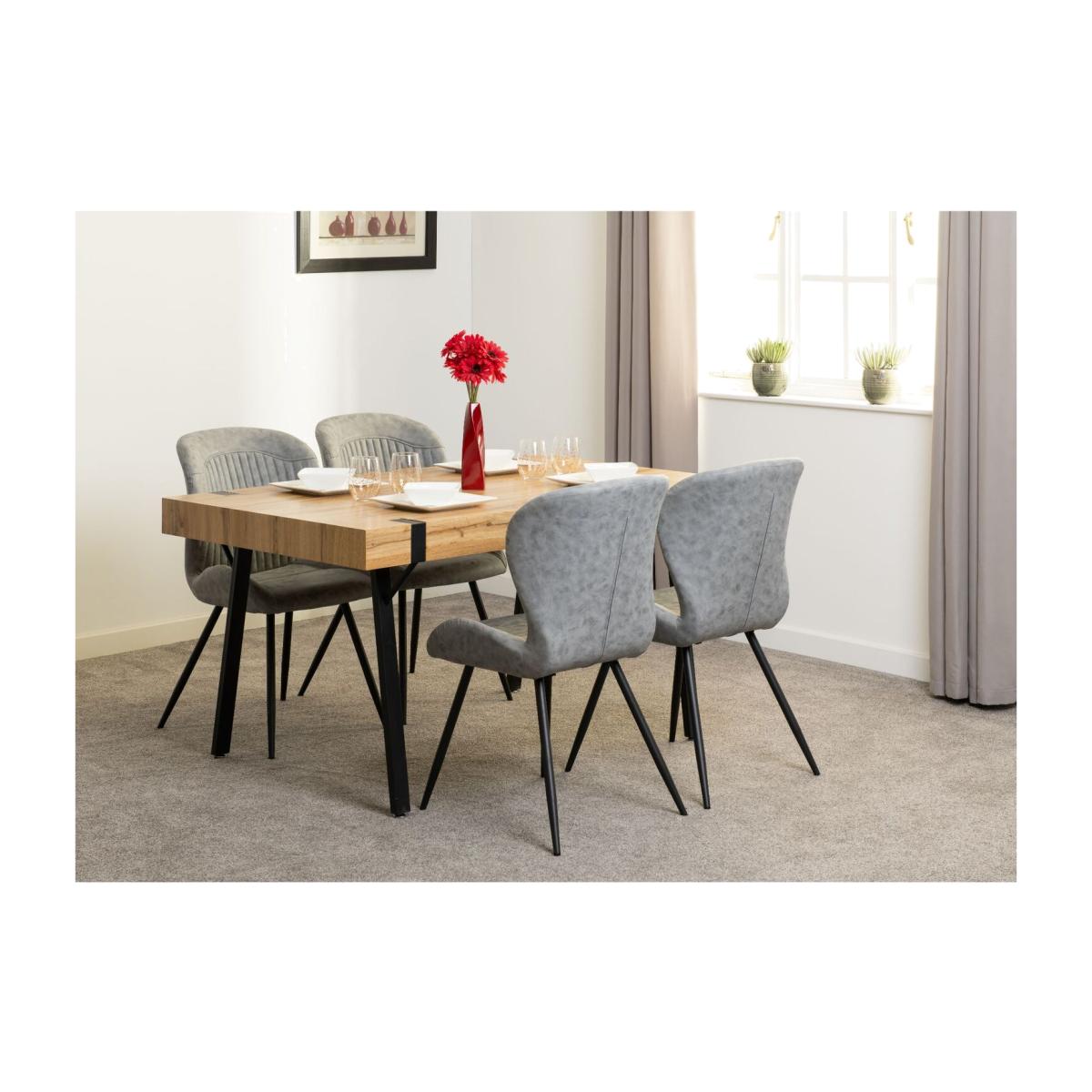The Treviso table is blend of modern design and natural charm. With its light oak effect top and sleek black metal legs and supports, this table combines functionality, style, and durability to create a stunning focal point for your dining area. The oak effect adds a touch of elegance and warmth to your dining space, creating a welcoming ambiance, the black metal legs add a contemporary contrast, adding a bold and modern element to the overall design. UK Mainland delivery only, between 9am - 9pm (weekdays) the courier will contact you on the day of delivery to offer a time slot. This takes place within 10 working days (Ground floor only). Please also ensure that we have a note of your up-to-date address and contact information to be passed to the couriers.