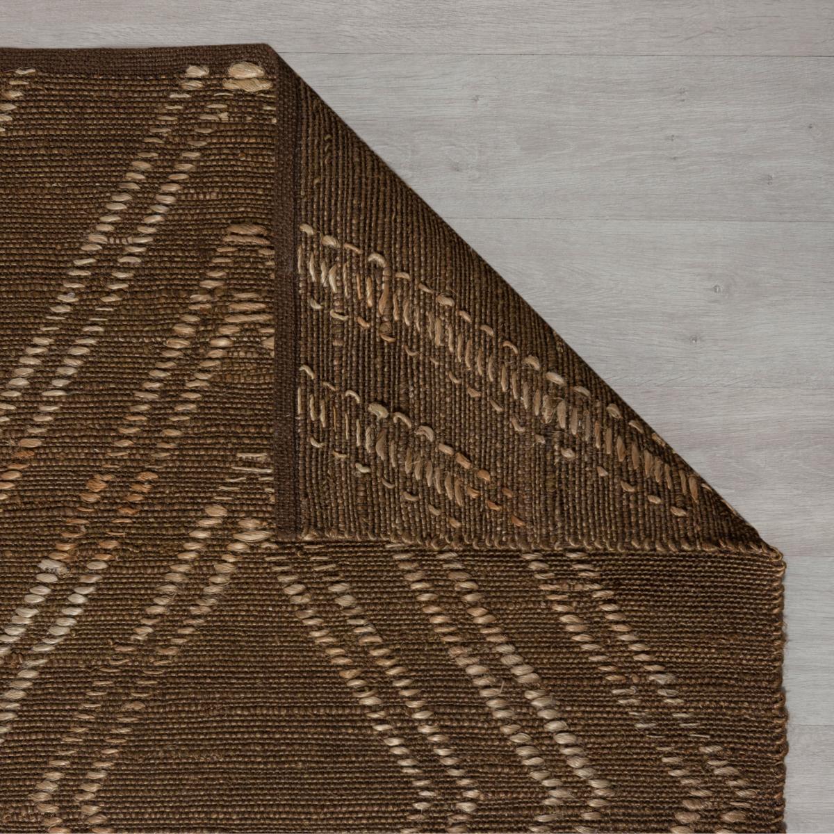 The Trey Rug pairs a natural jute shade with a large-scale geometric Berber-inspired pattern woven onto the surface. Handwoven by skilled artisans in 100% jute, the flat Trey rug is perfect for high-traffic areas. We love using the Trey Rug in dining spaces and busy social zones. A small amount of fibre loss is normal. Do not pull loose fibres, just trim with scissors. Safe for use on a heated floor. Use a suction type vacuum - rotating brushes may damage this rug. Re-roll your rug pile out for 24 hours to reduce curling. Regularly turn to ensure even wear. An anti-slip mat will help prevent slipping. Blot spills immediately with a clean, dry white cloth. Do not rub. Colour may vary as this product is made from natural fibres. Do not place this rug near an open fire. Please do not leave children or infants unattended.