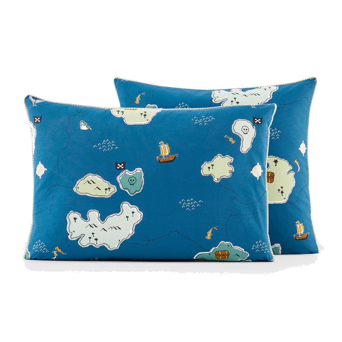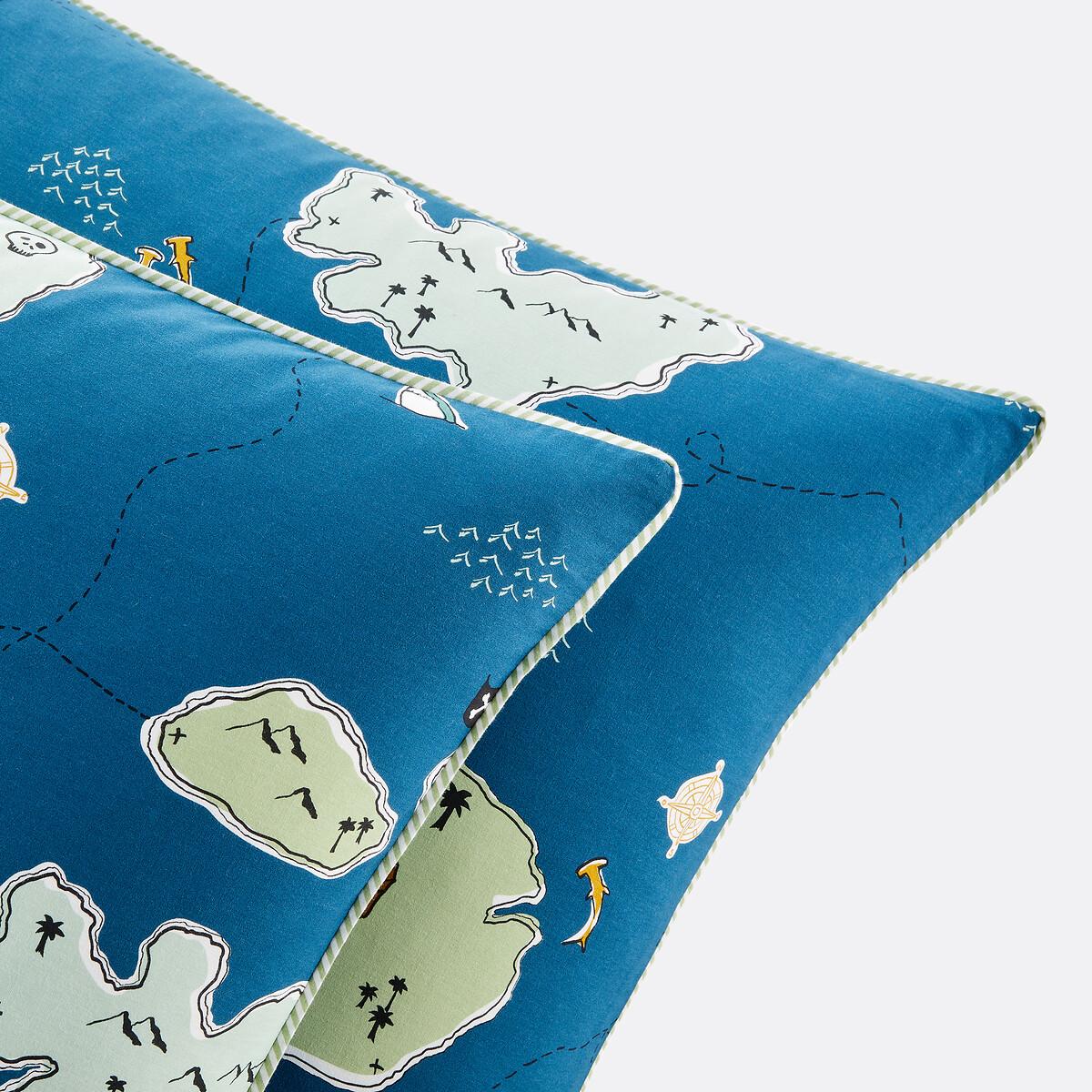 On an island lost in the ocean hides a fabulous treasure... In a land of adventures and dreams, the Trezor pillowcase will help to give your child sweet dreams. Designed by La Redoute Interiors. Cotton is part of our daily lives. We love it for its suppleness and softness. Easy Care, it is ideal for the beds of young and old alike!Product Details • 100% cotton • Contains 30% recycled cotton • 144 thread count • Treasure island print on both sides • Contrasting striped bias finish. Match this item with the rest of the bedding in the range for a stylish bedroom. And you can mix and match it with different colours and styles from our other bedding ranges when you want to change things up and create your own unique look. Care Advice • Machine washable at 60°C • By washing your laundry at 40°C instead of 60°C, you limit energy consumption. Dimensions • 50 x 70cm: Rectangular pillowcase • 63 x 63cm: Square pillowcase • Recycled cotton. Using recycled cotton is all about conserving resources and reducing waste. • OEKO-TEX® Standard 100. Standard 100 certification by OEKO-TEX® tests textile products for harmful substances via an independent, international label.