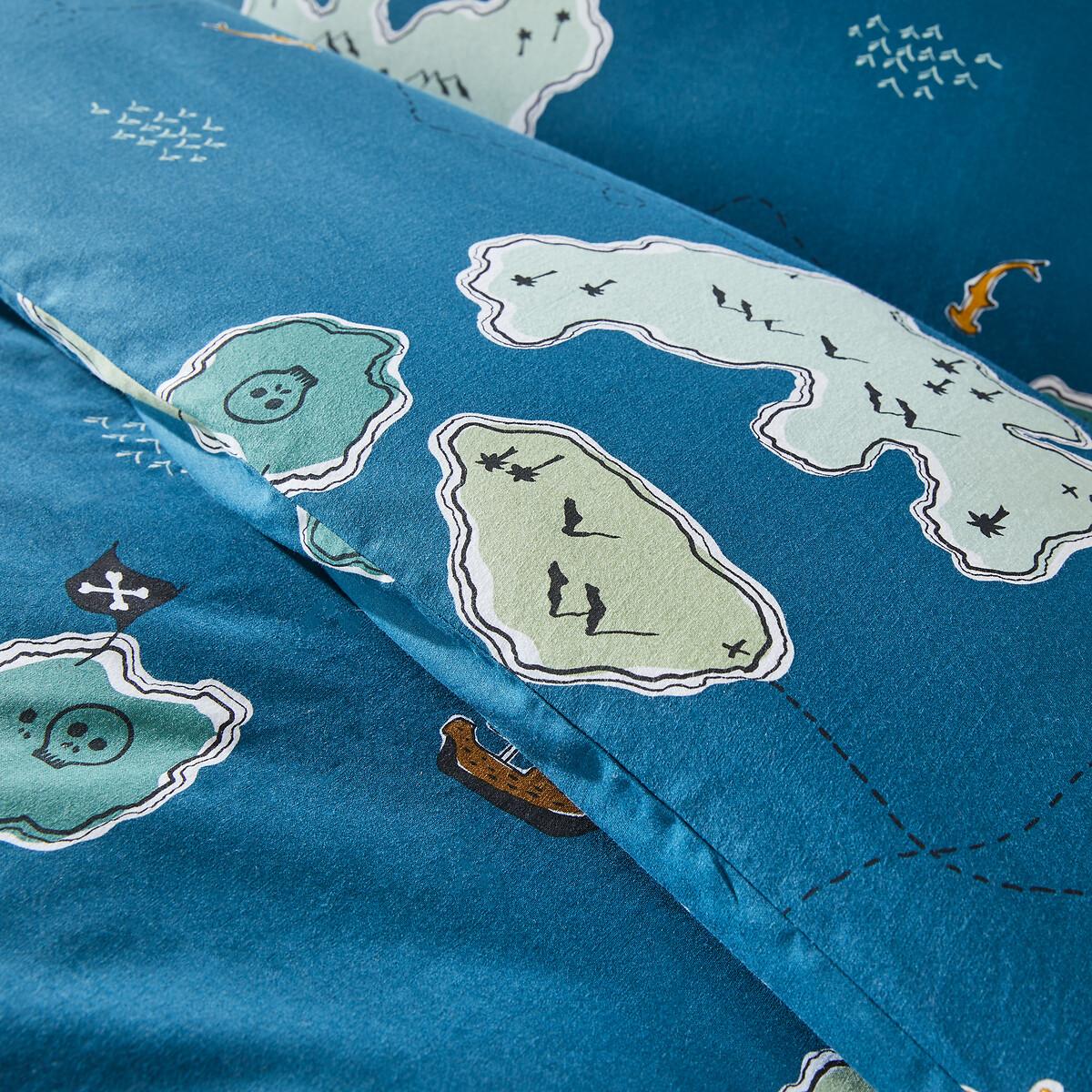 On an island lost in the ocean hides a fabulous treasure... Land of adventures and dreams, the Trezoro duvet cover will help to give your child sweet dreams. Designed by La Redoute Interiors. Cotton is part of our daily lives. We love it for its suppleness and softness. Easy Care, it is ideal for the beds of young and old alike!Product Details • 100% cotton • Contains 30% recycled cotton • 144 thread count • Treasure island print on both sides • Envelope-style opening Match this item with the rest of the bedding in the range for a stylish bedroom. And you can mix and match it with different colours and styles from our other bedding ranges when you want to change things up and create your own unique look. Care Advice • Machine washable at 60°C • By washing your laundry at 40°C instead of 60°C, you limit energy consumption. Dimensions • 140 x 150cm: Adjustable bed • 140 x 200cm: Single • 200 x 200cm: Double • Recycled cotton. Using recycled cotton is all about conserving resources and reducing waste. • OEKO-TEX® Standard 100. Standard 100 certification by OEKO-TEX® tests textile products for harmful substances via an independent, international label.
