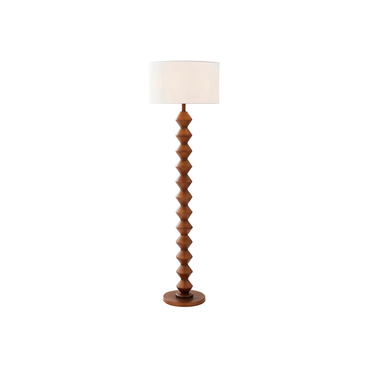 Introduce warmth, texture and style into your home with the Trezza Walnut Floor Lamp, a Pagazzi Design exclusive that blends contemporary shape with a classic, homely finish. Crafted from durable resin and expertly hand-painted in a rich walnut wood effect, this sturdy floor lamp delivers the look of natural timber with the benefit of long-lasting stability. Its distinctive stacked form adds sculptural interest, making it as much a decorative statement as it is a functional light source. Product dimensions: H153xDia4. 4 cm Foot switch for easy on/off control Requires 1x ES27 light bulb Simple assembly required – full instructions included The lamp is topped with a beautifully textured off-white fabric shade, which softens the light to create a warm, inviting glow—perfect for living rooms, bedrooms, or cosy reading corners. A clear cable exiting neatly at the back of the plinth ensures a discreet, unobtrusive look, while the foot switch offers effortless operation. Thoughtfully designed for convenience, the Trezza arrives with easy-to-follow assembly instructions, allowing you to set it up quickly and confidently.