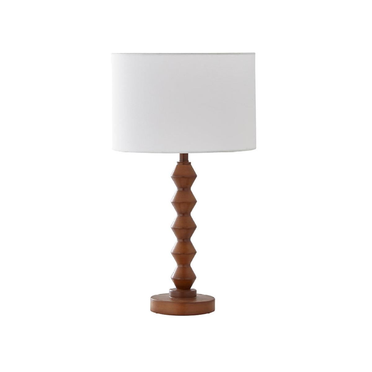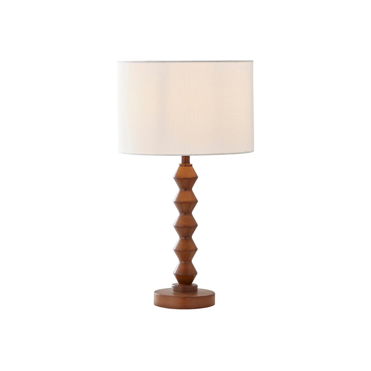 Add warmth and effortless style to your interior with the Trezza Walnut Table Lamp, a beautifully crafted Pagazzi Design exclusive. Created from durable resin and expertly hand-painted in a natural walnut wood effect, this lamp delivers the richness of real timber while offering long-lasting stability and a lightweight feel. Product dimensions: H54.5xDia3. 0 cm Requires 1x ES27 light bulb In-line switch Its sculpted, geometric base brings a delightful decorative element, while the accompanying off-white textured fabric shade softens the light to create a cosy, welcoming ambience. Compact yet full of character, the Trezza Table Lamp sits neatly on bedsides, side tables or consoles—ideal for enhancing any living space. Pair it with the matching Trezza Walnut Floor Lamp to unify your décor and complete a homely, inviting look.