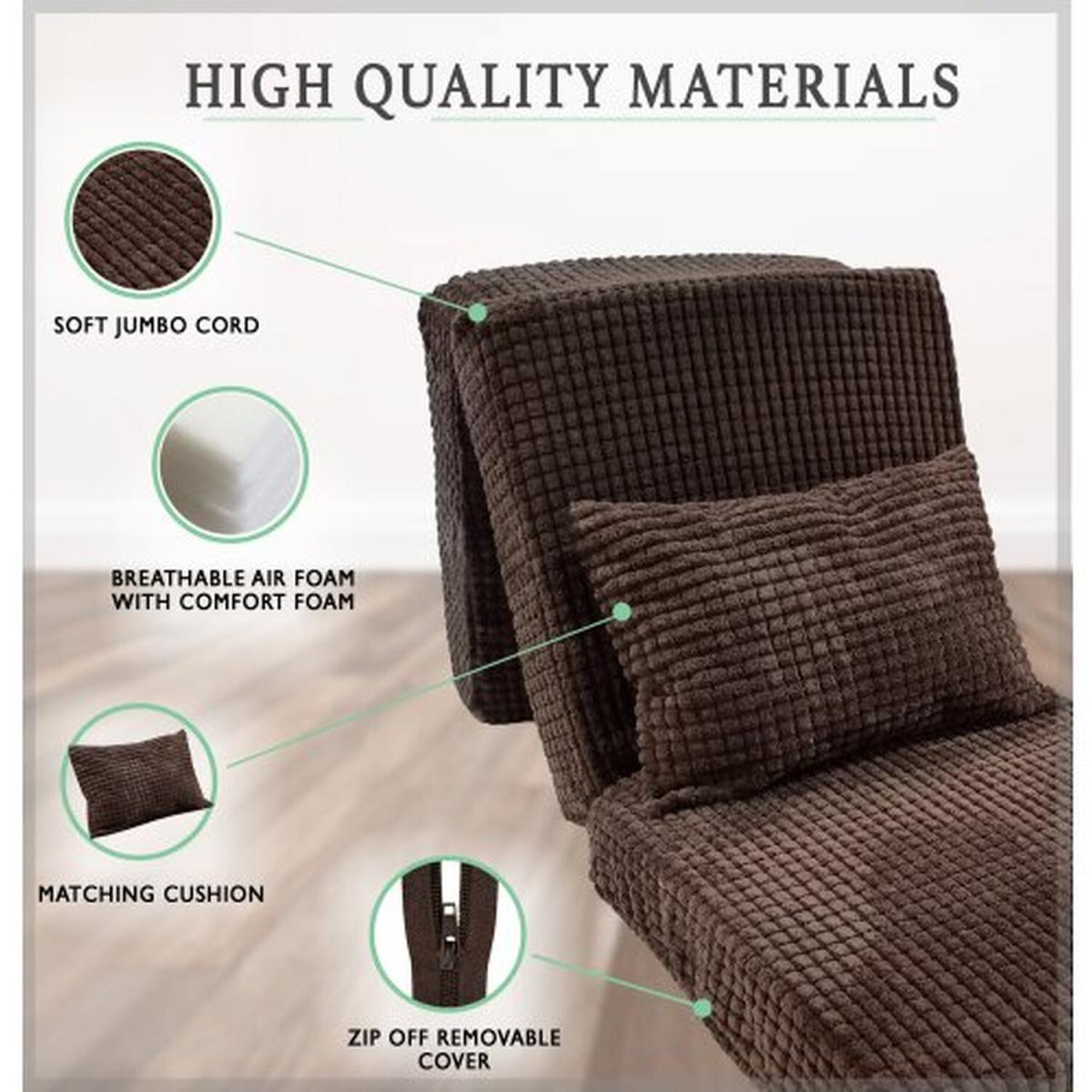 Replace your airbed with the 3 way folding futon mattress, for a no fuss solution to an extra place to sleep. The luxury Z Bed is perfect for camping, travelling and sleepovers. Its lightweight and foldable qualities mean it is easily transported and great for storage when not in use. The soft, removable, jumbo cord cover provides additional comfort to the firm foam mattress. The Z bed is 14cm thick, a great depth to prevent you from feeling any of the ground's lumps and bumps upon laying or sitting on this item. Dimensions unfolded - 63x190x14 cm, suitable to adults and children. IDEAL FOR SLEEP-OVERS, UNEXPECTED GUESTS OR CAMPING - The folding mattress pad offers a quick solution for guests, sleepovers or when you're the road. It is space-saving when folded up and ideal for camping or traveling. FOLDABLE AND EASY TO STORE OR TRANSPORT - Dimensions unfolded: 65x190x14 cm. This futon can be folded and stored just about anywhere. In a wardrobe, mobile traveler or simply under the bed. Dimensions folded: 63x65x45cm. The 3-way foldable mattress for adults and children is lightweight for easy transport. MEDIUM HARD FOAM CORE - Weight: 5kg. The spare guest z-bed has high-quality air foam padding with comfort foam which provides good support, thus ensuring restful sleep. This medium firm mattress has a good air and moisture exchange. SOFT, REMOVABLE COVER - The foldable matress has a plush, soft, jumbo cord cover for extra comfort. It is also removable making it easy to clean and maintain. The deluxe Z-Bed is available in 3 colours: Light Brown, Dark Brown and Grey. MANUFACTURED IN THE UK - Made in the UK and conforms to all British Fire Safety Regulations. Comes ready filled with fast delivery.