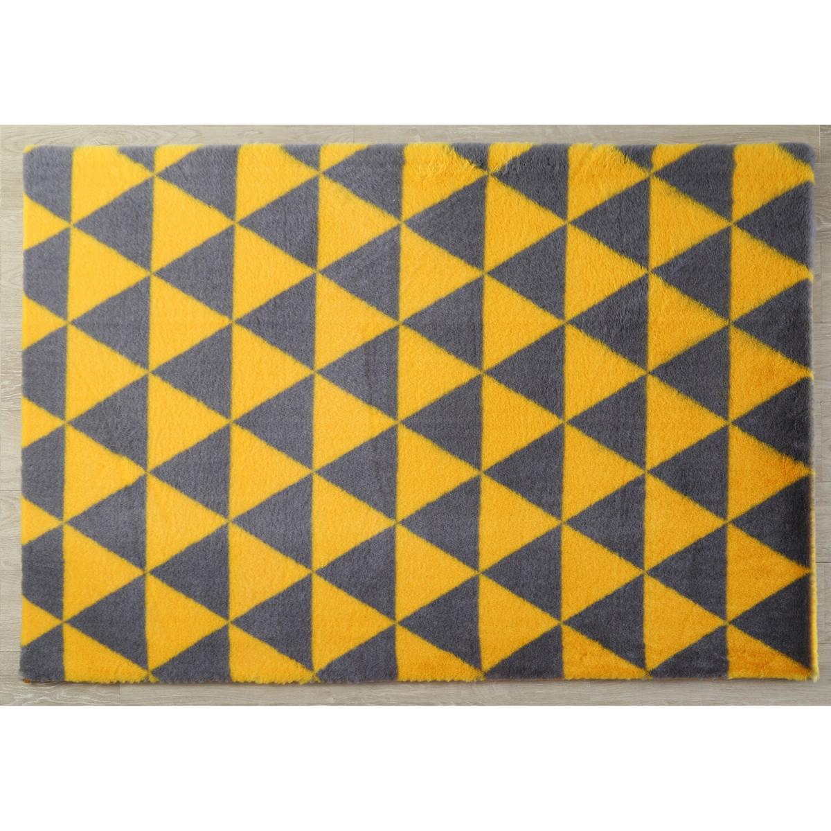 Tri Geo Faux Fur Rug - Ochre & Grey