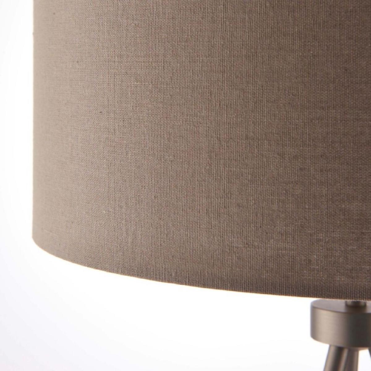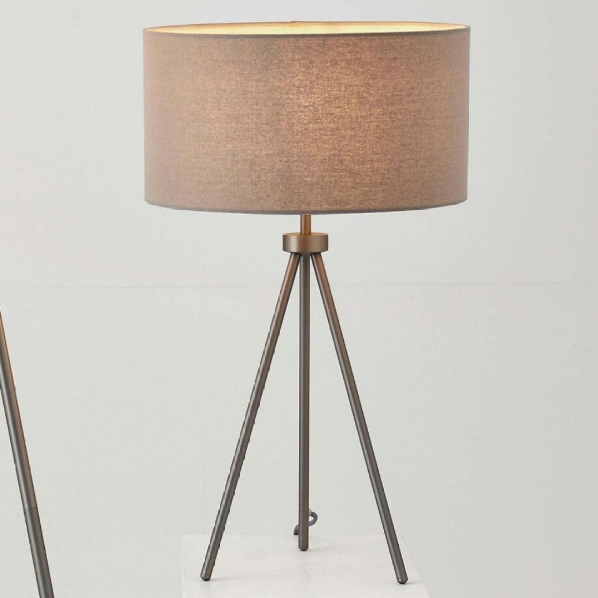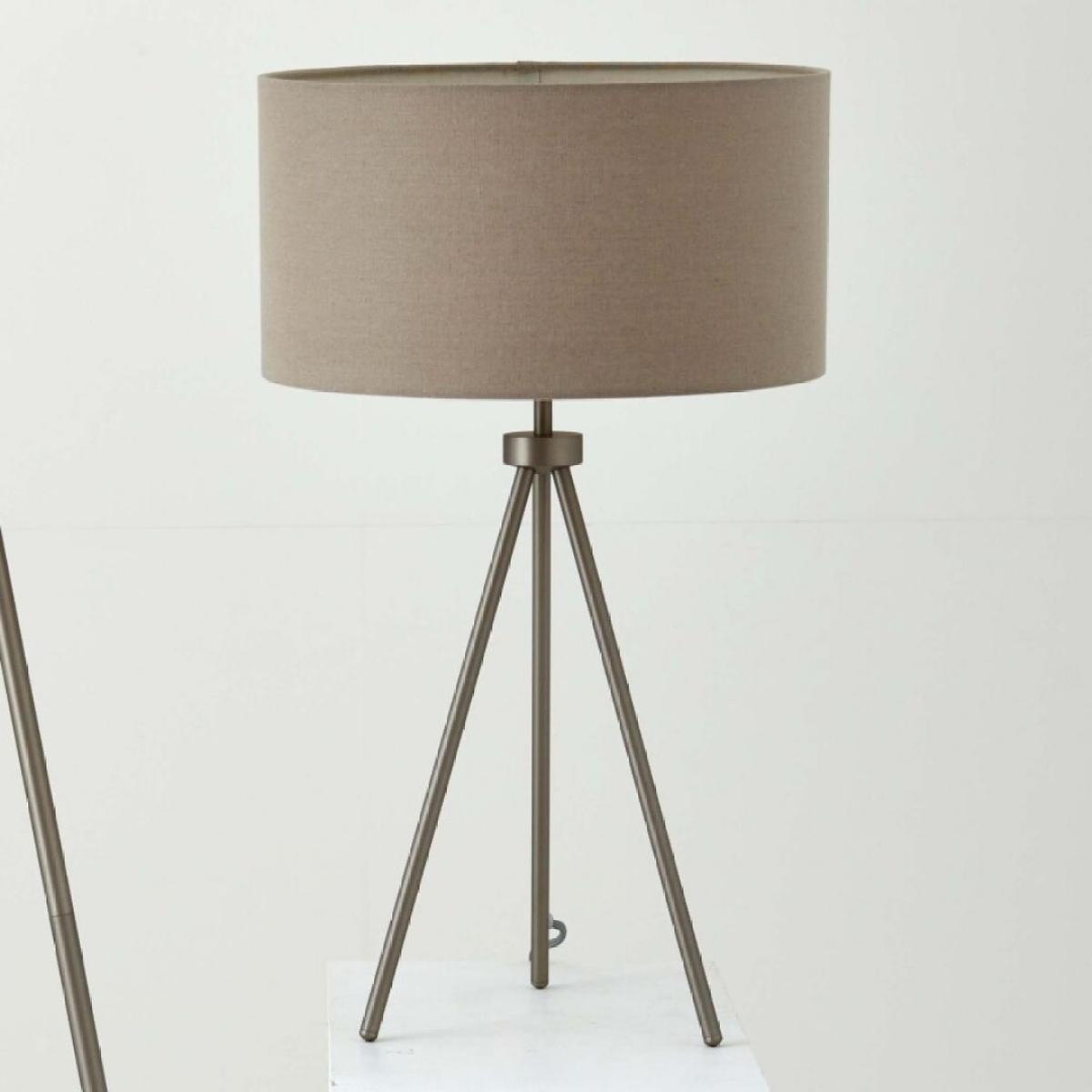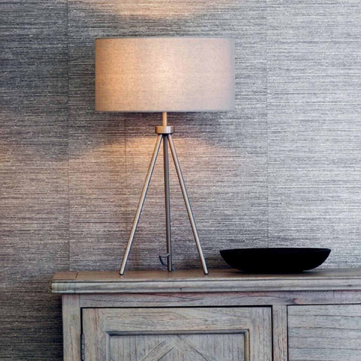 Tri steel tripod table lamp with matte nickel finish and grey fabric shade. A modern and stylish addition to any room, this contemporary table lamp features a sleek steel tripod base with a matte nickel finish, offering a touch of industrial chic to your decor. The sturdy tripod design ensures stability while adding a dynamic visual element to your space. Topped with a grey fabric shade, the Tri table lamp provides a soft, diffused light that creates a warm and inviting ambiance. The neutral shade complements the matte nickel finish, making this lamp a versatile piece that fits seamlessly into various interior styles, from modern to transitional. Perfect for your living room, bedroom or hallway, the Tri table lamp not only illuminates your space but also enhances your decor with its stylish design. Tri steel tripod table lamp with matte nickel finish and grey fabric shade. A modern and stylish addition to any room, this contemporary table lamp features a sleek steel tripod base with a matte nickel finish, offering a touch of industrial chic to your decor. The sturdy tripod design ensures stability while adding a dynamic visual element to your space. Topped with a grey fabric shade, the Tri table lamp provides a soft, diffused light that creates a warm and inviting ambiance. The neutral shade complements the matte nickel finish, making this lamp a versatile piece that fits seamlessly into various interior styles, from modern to transitional. Perfect for your living room, bedroom or hallway, the Tri table lamp not only illuminates your space but also enhances your decor with its stylish design.