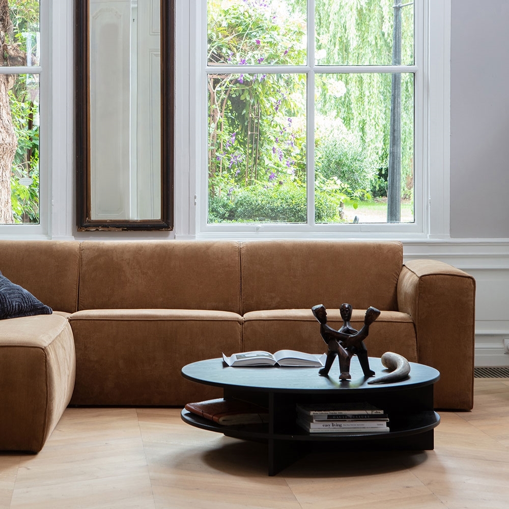I love this coffee table because of its sleek, contemporary design and practical shape, which works well in both modern and minimalist interiors. Its oval form offers a softer contrast to angular furniture, while the black finish adds sophistication without overpowering the space. It’s versatile enough to sit comfortably in various settings, from urban apartments to open-plan living rooms. For styling tips, consider layering with a few coffee table books, a small tray for organisation, and some greenery or statement ornaments to add personality. Its open shelf is perfect for keeping magazines and everyday items within easy reach, making it as functional as it is stylish.