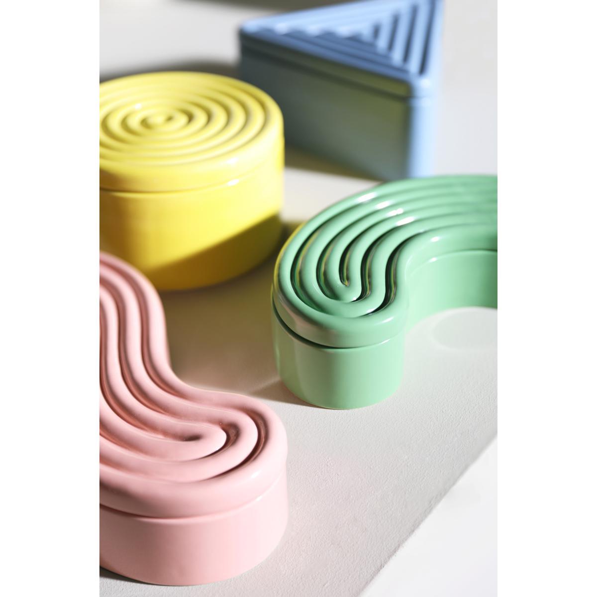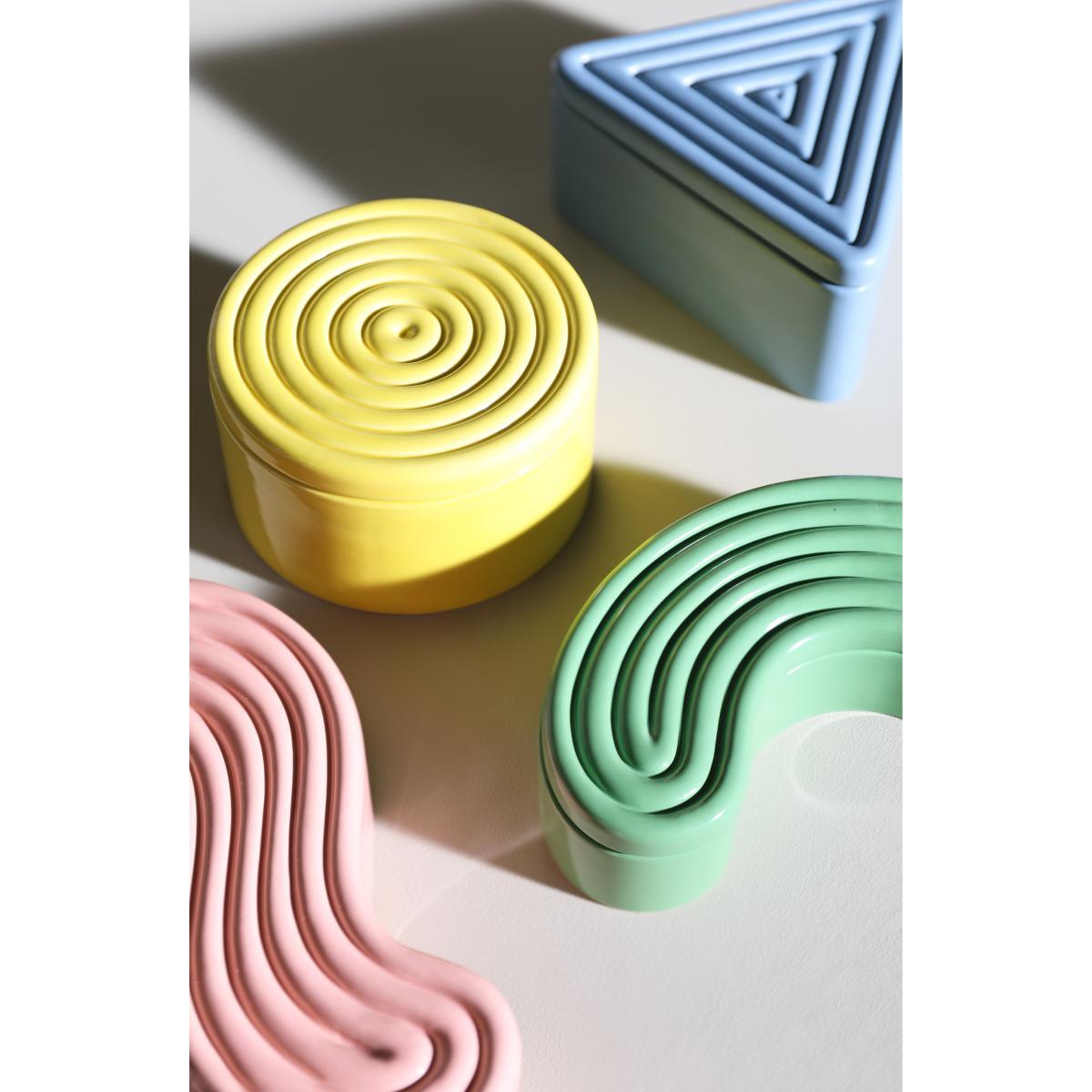 We're obsessed with these delightful and graphic porcelain jars. They've been developed to create a stunning harmony of geometric shapes and sharp colours. Use them in the kitchen to store sweets or sugar, or elsewhere in the house to tidy away small desk accessories, jewellery, cotton buds, etc.