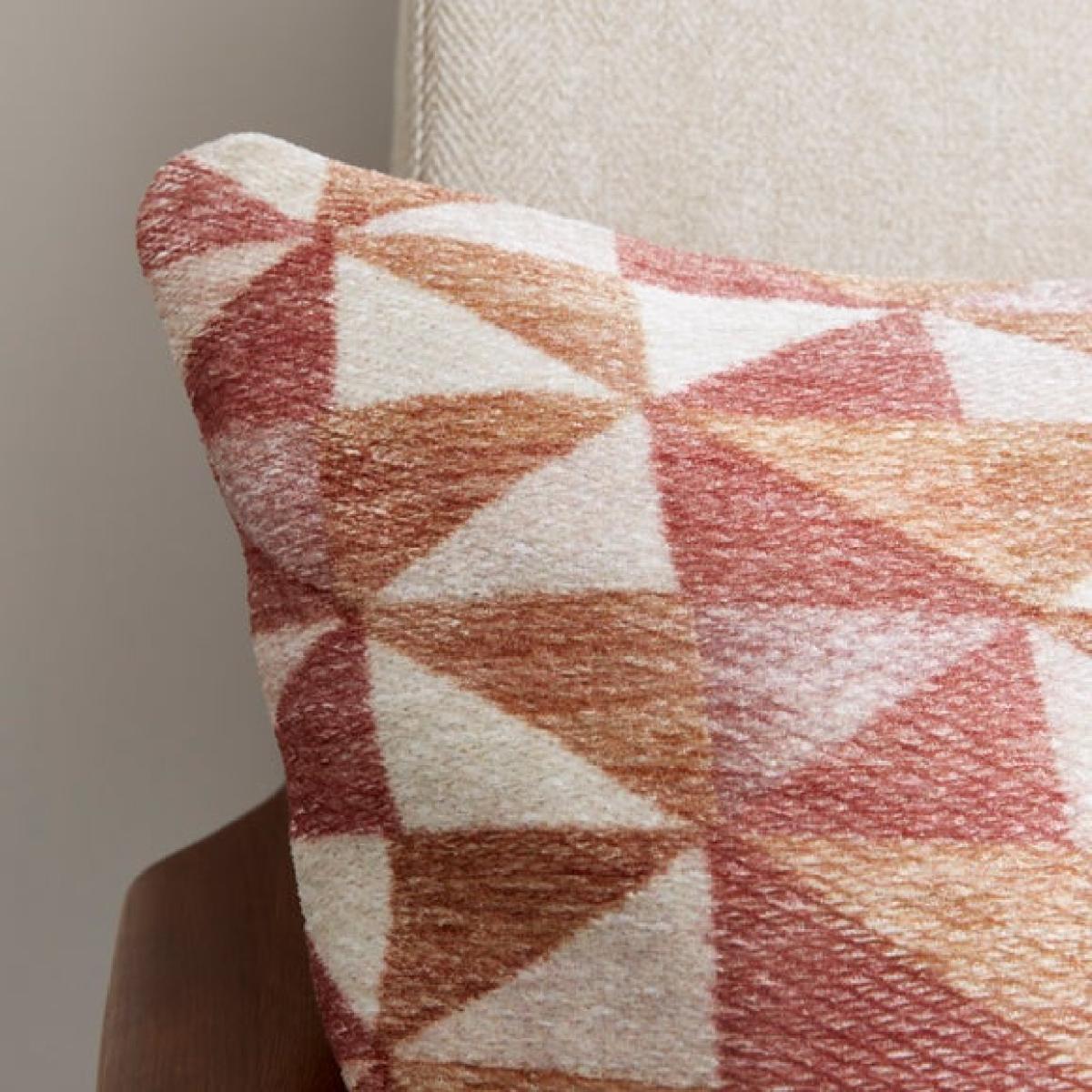 I love this cushions' striking geometric print - it adds visual interest without overwhelming the space. The triangle design works well in contemporary, minimalist, or Scandinavian interiors, but also brings a modern touch to more eclectic or boho settings. It’s versatile enough to pair with plain, textured, or patterned throws and other cushions, making it perfect for styling sofas, armchairs, or beds. For practical tips, consider mixing it with neutral tones to let the pattern stand out or combining it with other colours in the same palette for a coordinated look. It’s a great way to introduce subtle colour and structure while maintaining a chic and effortless vibe in your space.
