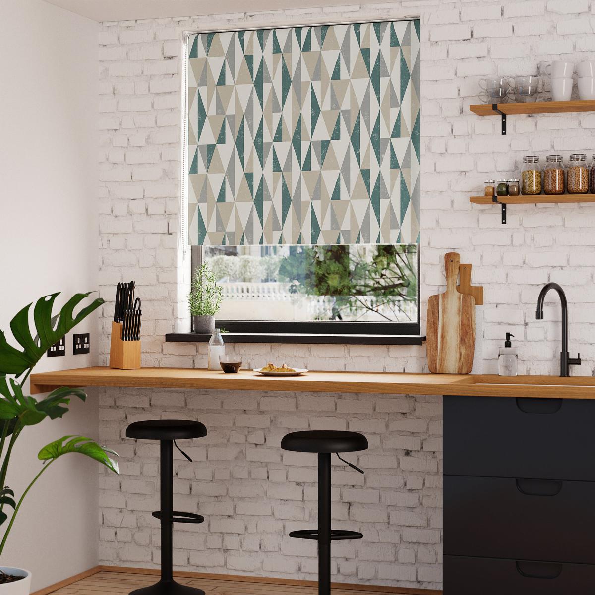 Patterned with a geometric triangle print in a stunning peacock colourway, this contemporary roller blind features full blackout coating and is available in a selection of sizes, with all fixtures included. Please note: The width stated is for the fabric only, please allow an extra 3. 2cm for the brackets and mechanism. Always check specific fitting instructions and check measurements for your blind once purchased before cutting to size. To see instructions, please click. Here.