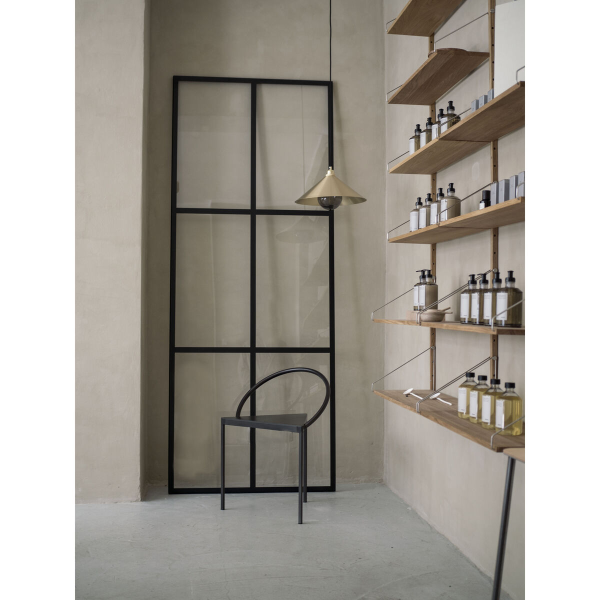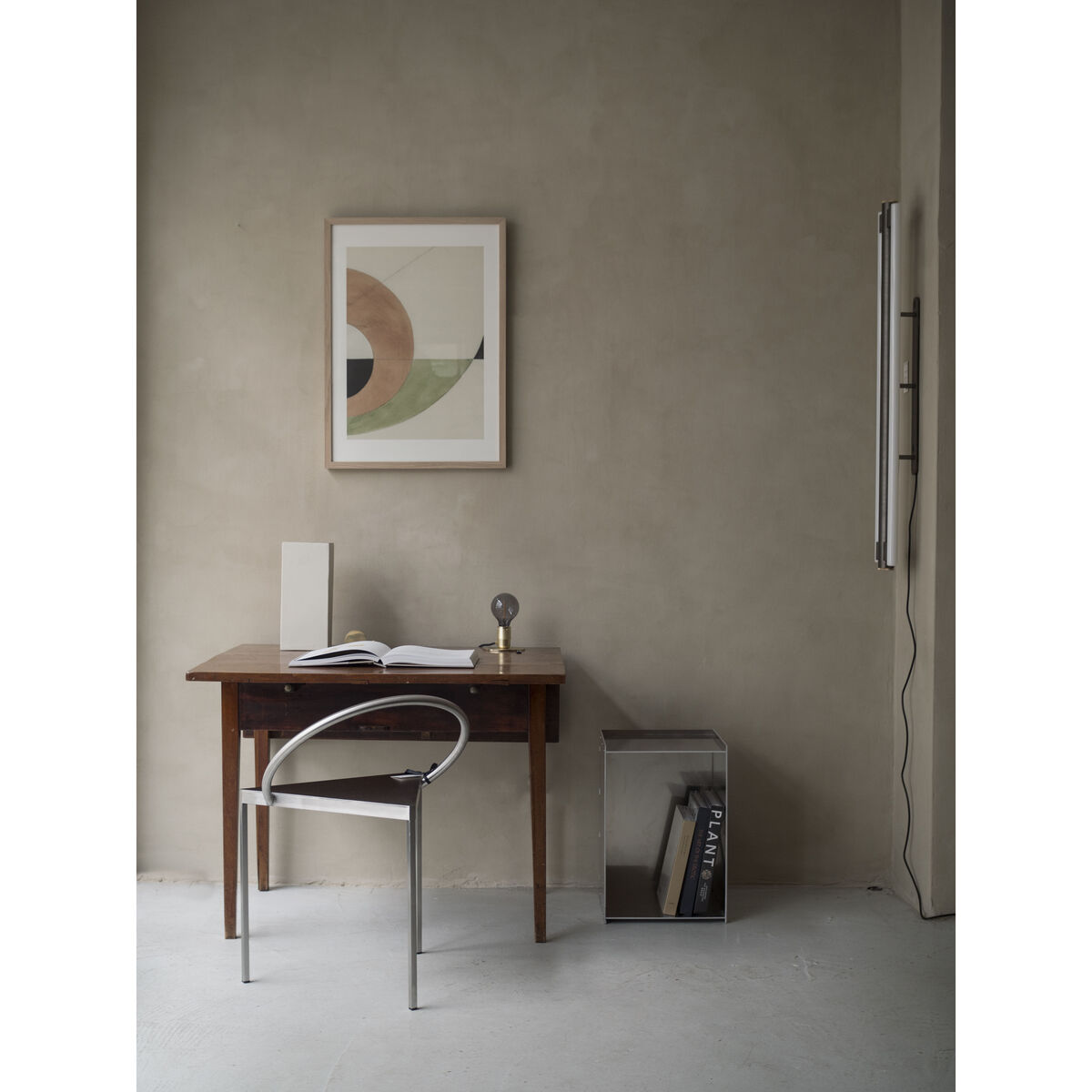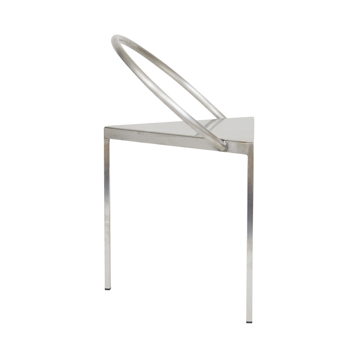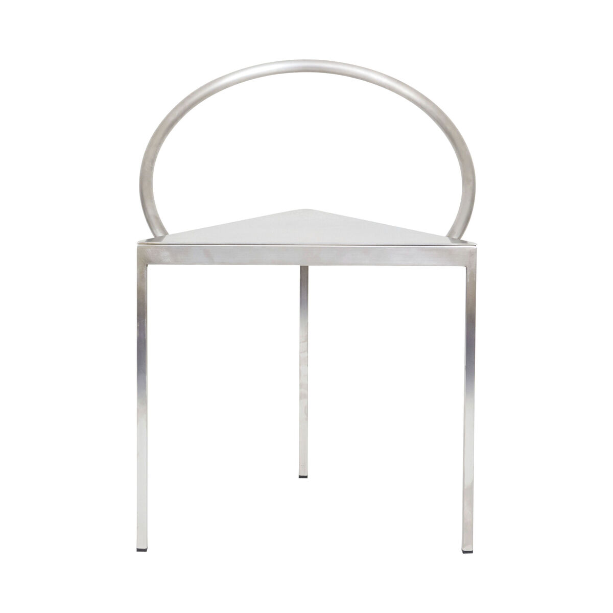 A totally stripped-back, ethereal structure for this incredible steel chair that's akin to a modern sculpture. The Triangolo chair was created in 1989 by Danish designer Per Holland Bastrup. Featuring a tripod base, it stands out for its triangular seat, topped off with a truncated inclined ring that serves as a backrest. An interlocking triangle and circle: these two essential, elementary geometrical forms give rise to a simple, expressive composition with perfect proportions. This sculptural, refined construction explores the notion of balance. Despite its apparent imbalance, this chair is perfectly stable. It can be used around a table, in a living room, an entrance, a bedroom... It captures the eye like a contemporary work of art.