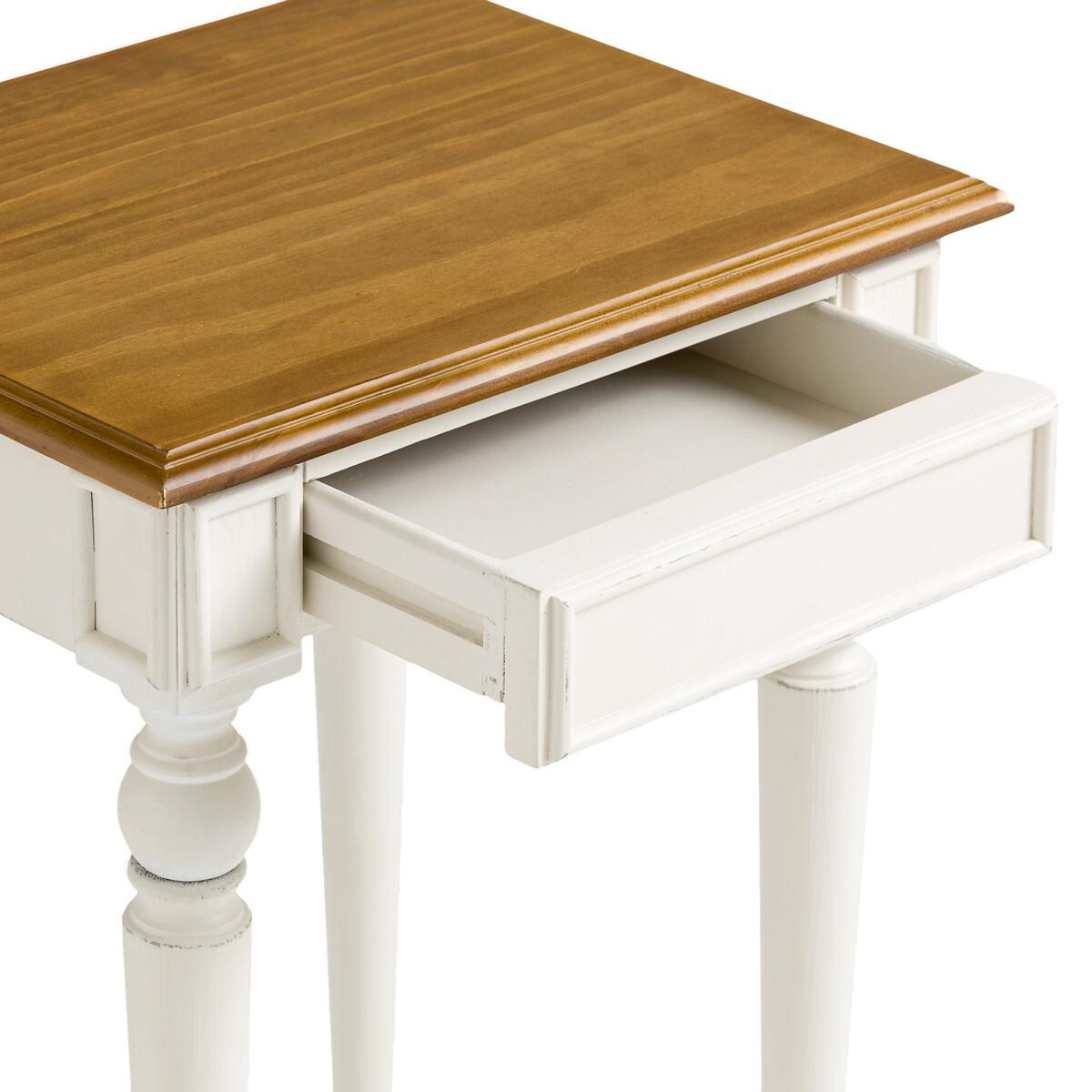 I love this little table for its classic, versatile style and charming character. Its blend of a white painted finish with a warm wooden top makes it adaptable across many interior schemes-from cosy cottage bedrooms to more traditional or shabby chic settings. It works well styled simply with a lamp, a few books, or a small vase of flowers, keeping surface clutter to a minimum. For practical styling tips, consider mixing vintage accessories with contemporary textiles to create an inviting, personalised bedside zone. Its compact size makes it a great choice for smaller bedrooms or guest rooms where space is at a premium, while still offering functional storage that doesn't compromise on aesthetic appeal.