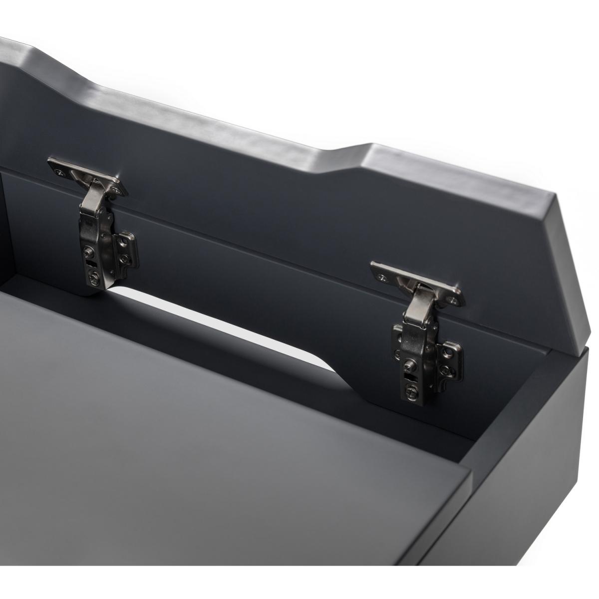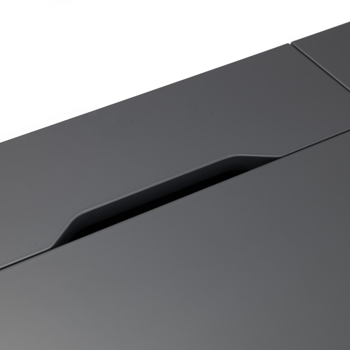 The Trianon Desk is the perfect addition to upgrade your workspace. This simple, Scandinavian design offers copious amounts of storage for your office supplies, featuring pull-out drawers at the front and 3 lift-up storage compartments with stunning recessed handles. The Trianon Desk is available in a grey or white finish upon slender, black metal legs, ideal for smaller working areas