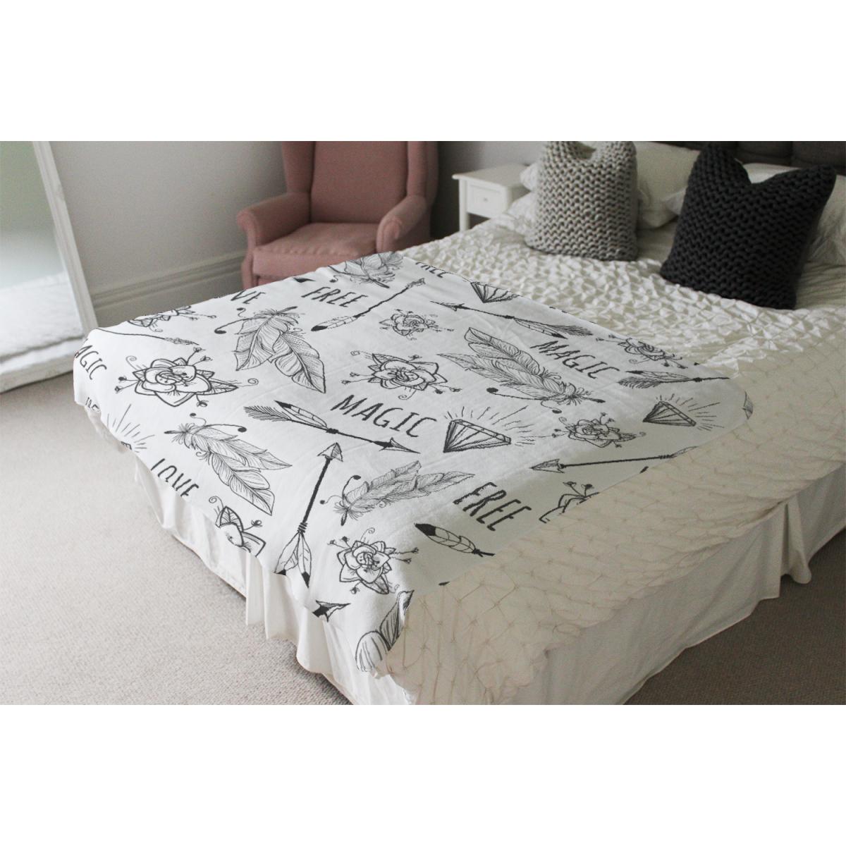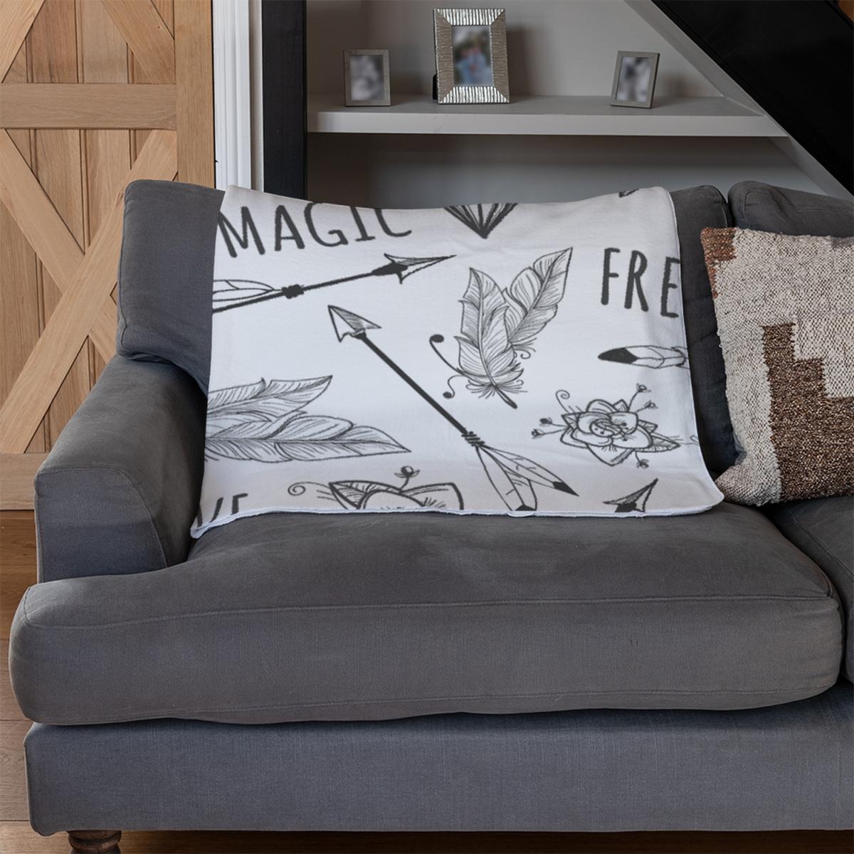 Tribal Feathers Arrows And Diamonds Blanket - Black