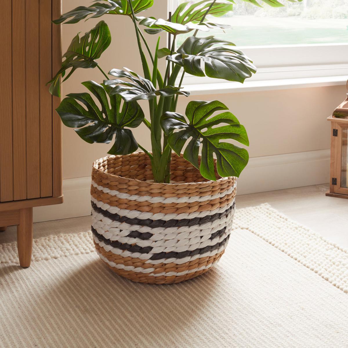 The small natural basket is a great addition to both contemporary and bohemian interiors, thanks to its neutral tones and organic texture. I love it for adding warmth and visual interest to a space without overwhelming it. It’s particularly useful for bringing style and function together - perfect for storing throws, magazines, or even plant pots like in the image. When styling, consider pairing it with other natural materials such as wood or linen to create a cohesive, relaxed vibe. It also works well as a standalone feature in a corner or beside furniture, offering both practicality and aesthetic appeal.