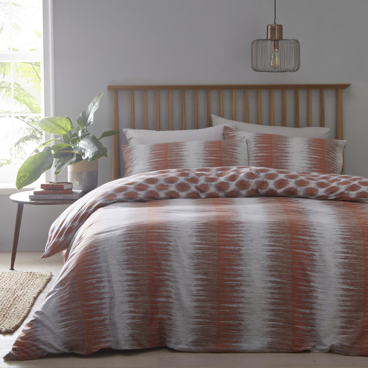 An ethnic-inspired tribal design mixed with on-trend geometric inspiration, layered textured shapes in a choice of fashionable shades build up a wonderfully modern range. A truly reversible duvet cover offering a choice of two patterns for those who like variety, which will you choose today?
