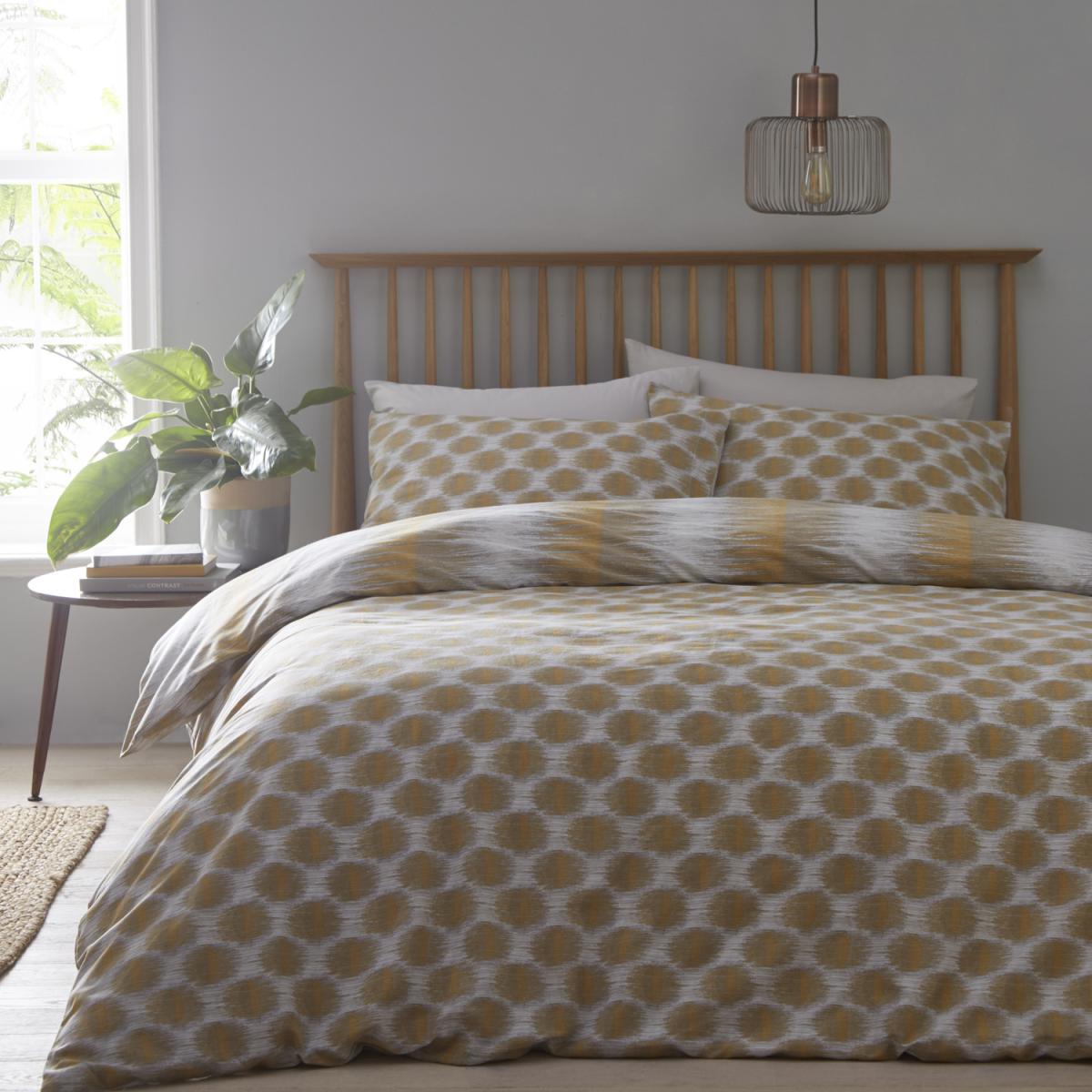 I really like this tribe duvet set because of its warm ochre tones and subtle pattern, which add a sense of coziness and character to the bedroom. It works particularly well in neutrally styled interiors or spaces with natural textures, such as wood or wicker, helping to bring a touch of colour without overwhelming the room. For styling tips, pair it with crisp white or light grey sheets to keep the look fresh, and consider layering with textured cushions in complementary earthy shades for added depth. This duvet is also versatile enough to suit both modern and more relaxed, bohemian spaces, making it a practical choice for updating your bedroom without a complete overhaul.